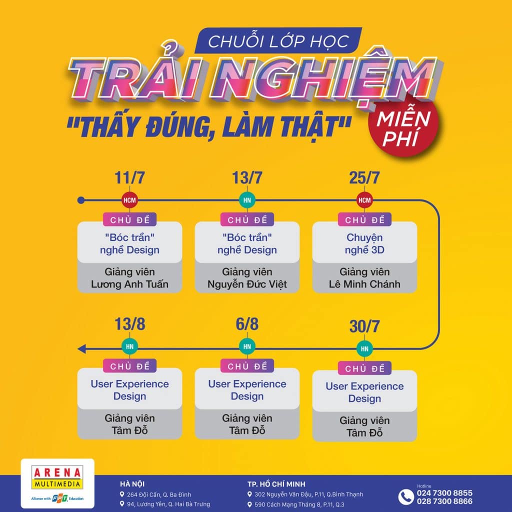 Chuỗi lớp học trải nghiệm “Thấy đúng, làm thật – Bóc trần nghề Design” là một hoạt động hoàn toàn miễn phí từ FPT Arena Multimedia (FAN). Mục đích của chuỗi lớp học này là giúp bạn hiểu hơn về nghề Mỹ thuật đa phương tiện, biết được những điều mà nhà trường hay báo chí chưa từng đề cập đến.