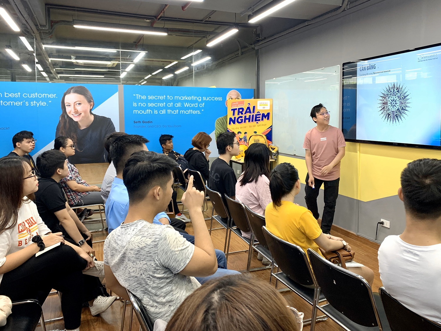 Với chủ đề “Bóc trần nghề Design” cùng FAN, hai lớp học đầu tiên thuộc Chuỗi Trải nghiệm miễn phí đã được diễn ra thuận lợi tại hai cơ sở 94 Lương Yên và 302 Nguyễn Văn Đậu. Đồng hành cùng các bạn trẻ yêu thích thiết kế lần này là thầy Lương Anh Tuấn – 9 năm kinh nghiệm giảng dạy và thầy Nguyễn Đức Việt – 12 năm kinh nghiệm trong nghề Design.