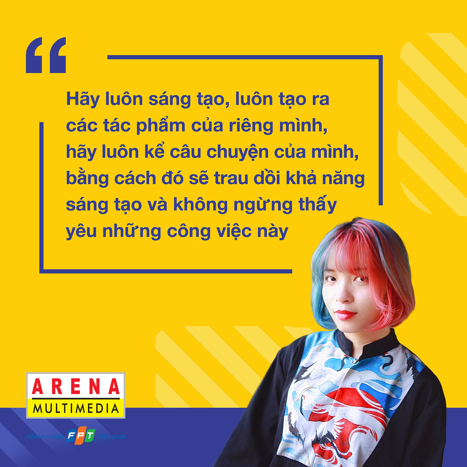 Ngay từ khi còn nhỏ, mình đã yêu thích ngành sáng tạo và luôn khao khát được khẳng định cái tôi cá nhân qua các tác phẩm sáng tạo chính mình làm ra. Năm 2008, hết cấp 3 mình thi Đại học Mỹ thuật công nghiệp nhưng trượt, buồn mất mấy ngày xong thì mình tự tìm hiểu xem có lựa chọn nào ngoài học trường đại học khác không, vì vẫn thích được học và làm công việc liên quan đến sáng tạo, nghệ thuật.Và FPT Arena Multimedia là lựa chọn uy tín nhất mình tìm được.