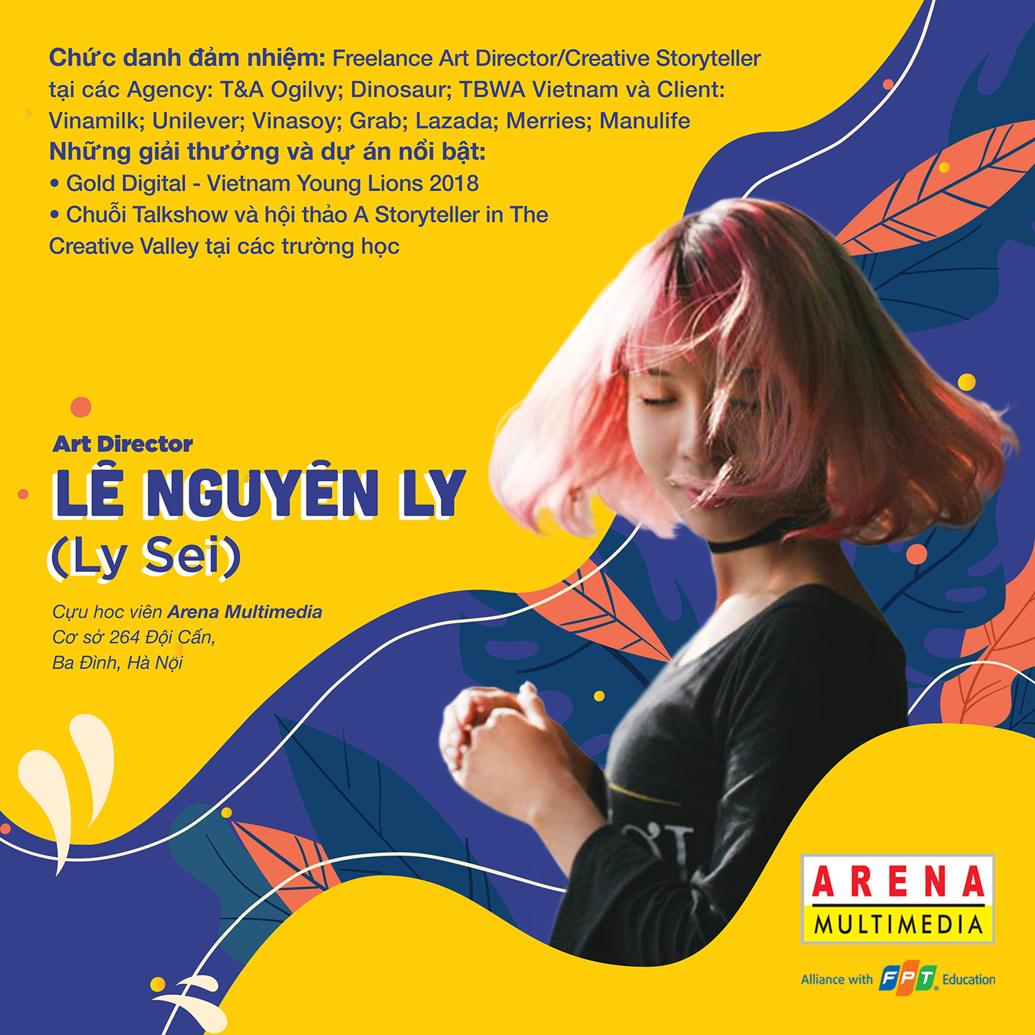 Theo Ly thời gian học tại trường bao lâu không quan trọng bằng những kiến thức và kinh nghiệm mình có được trong thời gian đó. Qua hai năm học tại FPT Arena Multimedia, mình đã xây dựng góc nhìn tổng quan về ngành mỹ thuật đa phương tiện và tiếp tục trau dồi kiến thức chuyên sâu hơn, giúp mình có những bước đi nhanh hơn so với các bạn đồng trang lứa dù là học cùng ngành.