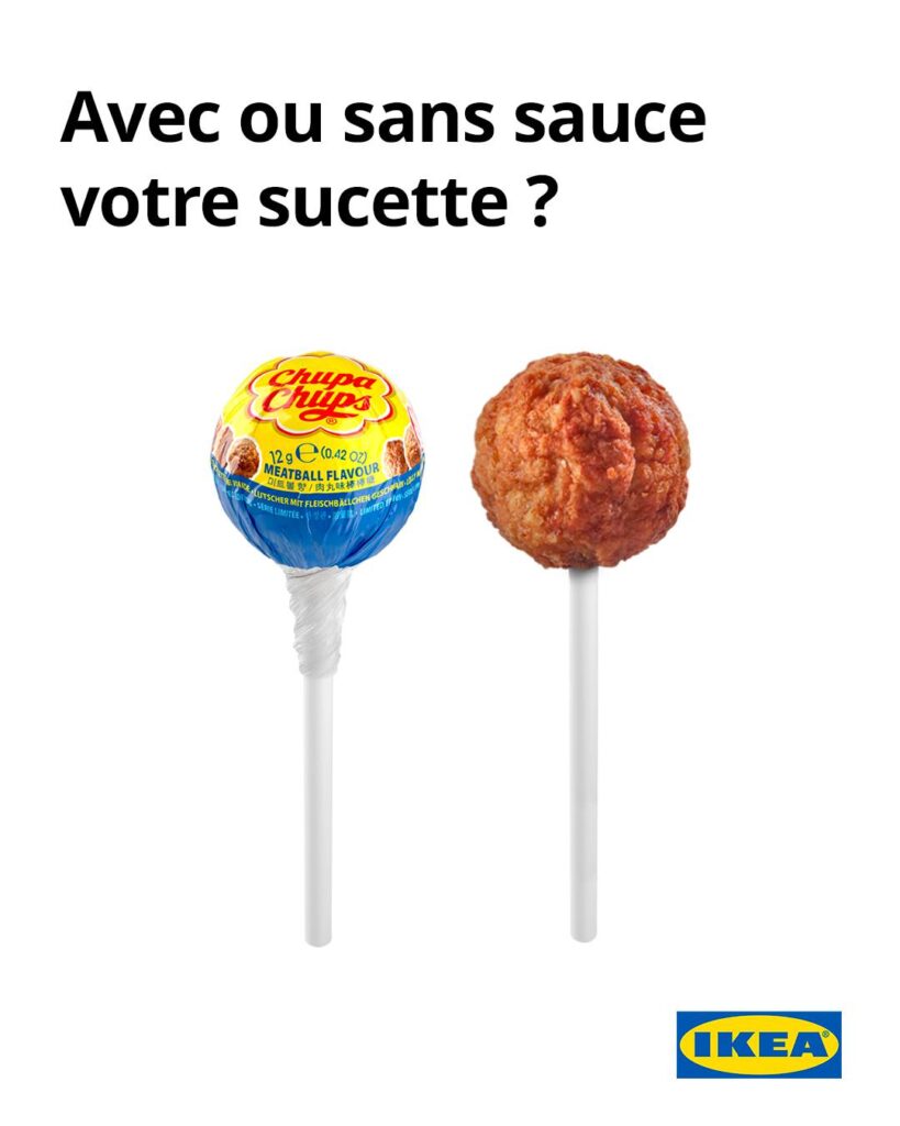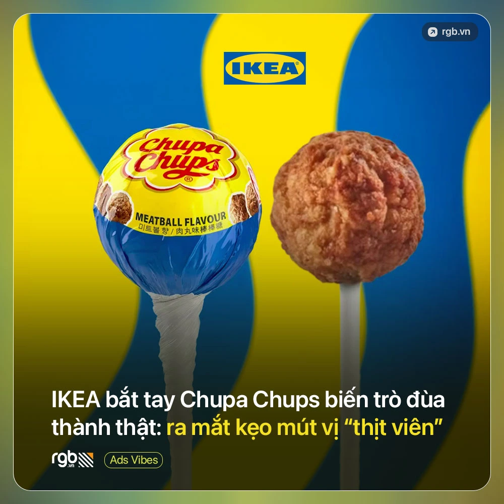 Không phải trò đùa nào cũng dừng lại sau ngày Cá tháng Tư. Với IKEA, một ý tưởng tưởng chừng chỉ để gây cười lại trở thành… sản phẩm có thật. Hợp tác cùng Chupa Chups, thương hiệu mang đến một concept đầy bất ngờ: kẹo mút lấy cảm hứng từ món thịt viên Thụy Điển trứ danh. Một ý tưởng vừa lạ lẫm, vừa gợi tò mò, đánh vào cả sự hiếu kỳ lẫn cảm giác quen thuộc của người dùng.
