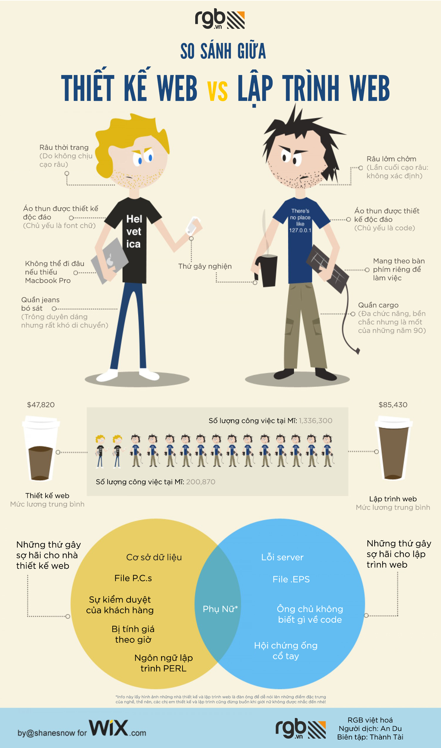 Lập trình web và thiết kế web được biết đến như những khái niệm Công nghệ web khá quen thuộc và gần gũi hiện nay. Thế nên, hôm nay RGB sẽ không lặp lại những so sánh công việc của 2 ông bự website này nữa mà sẽ cùng các bạn t8m chuyện xuyên lục địa về lifestyle của họ qua infographic dưới đây!