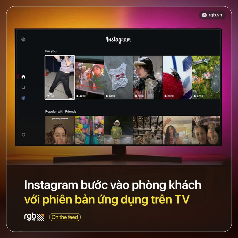 Ứng dụng Instagram for TV hiện được triển khai dưới dạng thử nghiệm giới hạn trên các thiết bị Amazon Fire TV tại Mỹ. Ứng dụng cho phép người dùng xem Reels trực tiếp trên màn hình lớn, đồng thời tận dụng lịch sử hoạt động Instagram hiện có để đề xuất nội dung cá nhân hóa. Đây là bước đi chính thức đầu tiên của Instagram vào mảng connected TV, đưa nền tảng này vào thế cạnh tranh trực diện hơn với YouTube – dịch vụ từ lâu đã coi phòng khách là không gian xem chủ đạo.