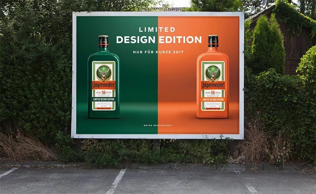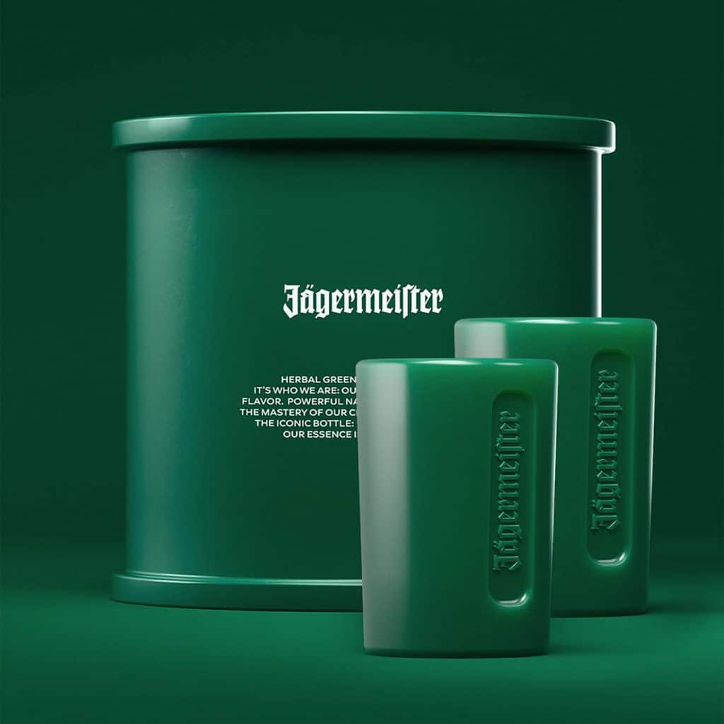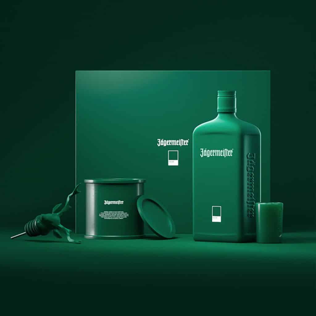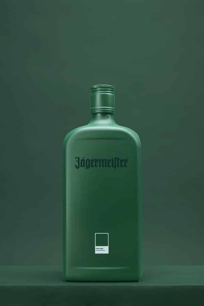 Màu xanh lá cây mang tính biểu tượng của chai Jägermeister đã được Pantone làm mới, chuyển sang hai màu sắc mạnh mẽ cùng chất liệu hiệu ứng mờ. Trong đó, màu xanh lá cây đậm được gọi là “Herbal Green” (Xanh thảo mộc) đầy tính hấp dẫn và dễ nhận biết ngay đến thương hiệu, bên cạnh đó là “Culture Orange” (Cam văn hoá), gợi nhớ đến màu cam thường thấy trên nhãn chai Jägermeister trong nhiều thập kỷ.