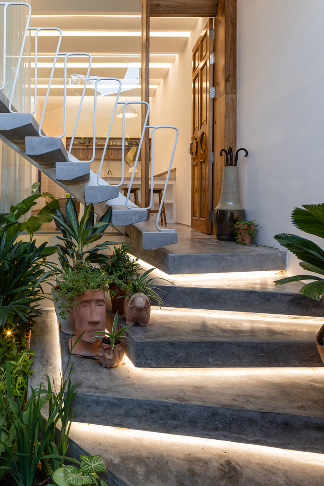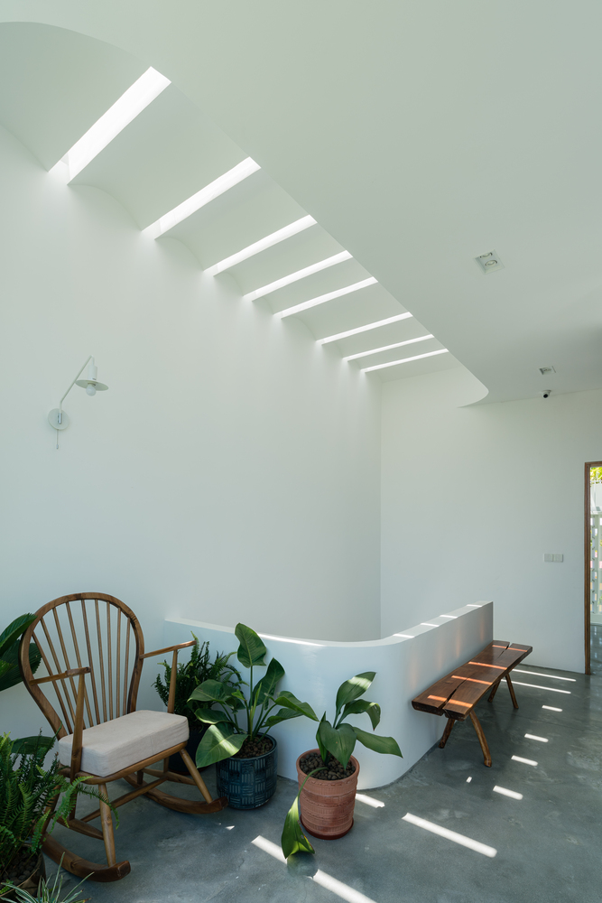 Bức tường hoa văn gấp ở mặt tiền vừa chắn nắng vừa giúp ngôi nhà chống chọi với mưa vào mùa đông nhưng vẫn cho không khí ra vào thông suốt. Không chỉ vậy, những nếp gấp này góp phần tạo nên hình dáng của tòa nhà, khiến nó trở nên đặc biệt, nổi bật nhưng vẫn đơn giản.