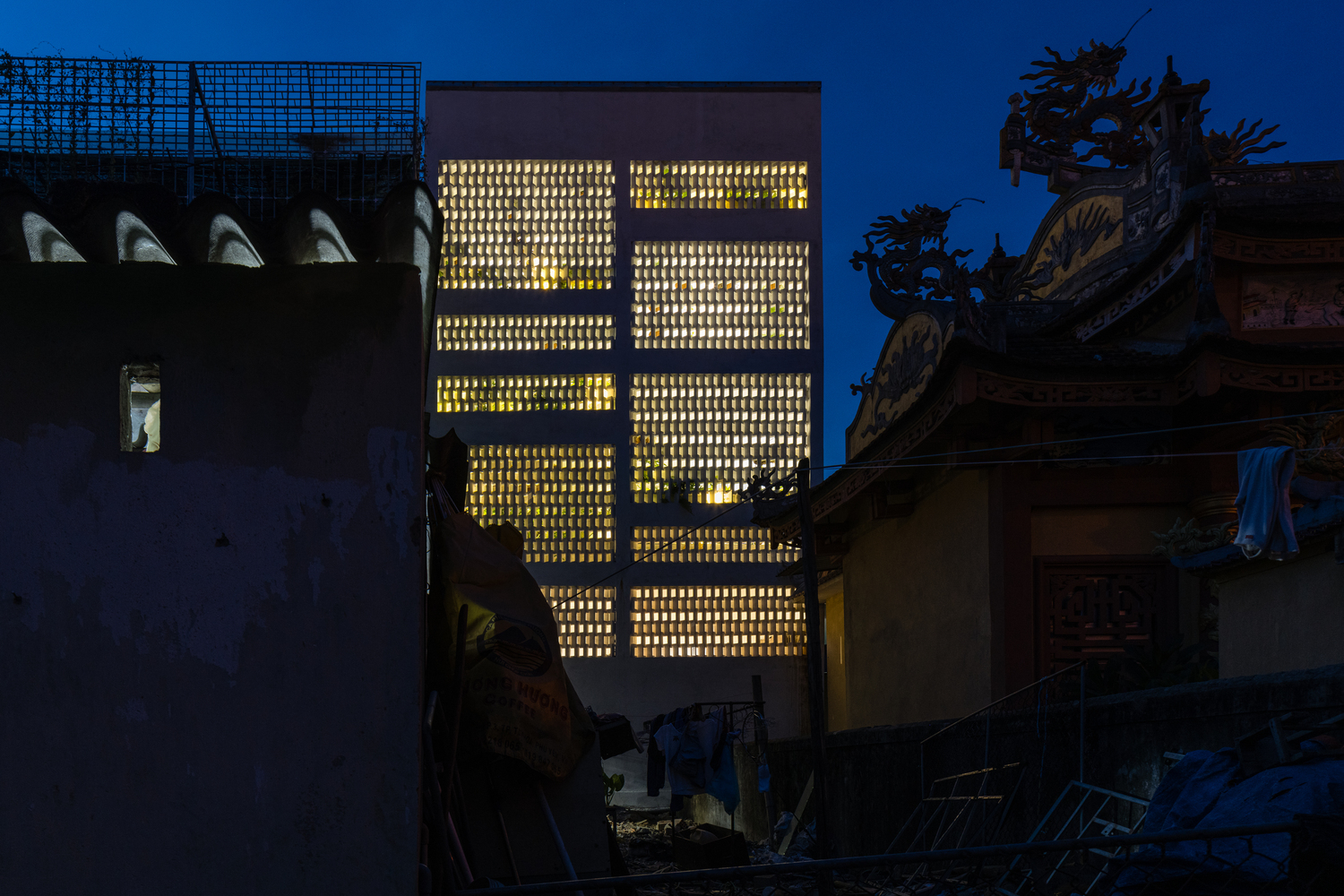 Ở các đô thị Việt Nam, những ngôi nhà hình ống nhỏ hẹp với thiết kế giống nhau đứng san sát là điều quá phổ biến. Kiểu nhà này thường bị tình trạng thiếu không khí và ánh sáng do các mặt bị giáp vào nhau. Bên cạnh đó, Huế còn là một trong những nơi có lượng mưa lớn nhất Việt Nam. Chính vì vậy, khi thiết kế Jalousie House, KTS đã chủ tâm tạo ra những lớp chồng lên nhau như cửa lam để đảm bảo thông gió mà vẫn kín nước. KTS sử dụng hai phương án phân lớp, một là hệ thống cửa chớp kính với vách hoa văn gấp ở mặt tiền và hai là hệ thống chắn gió ở mặt sau ngôi nhà.