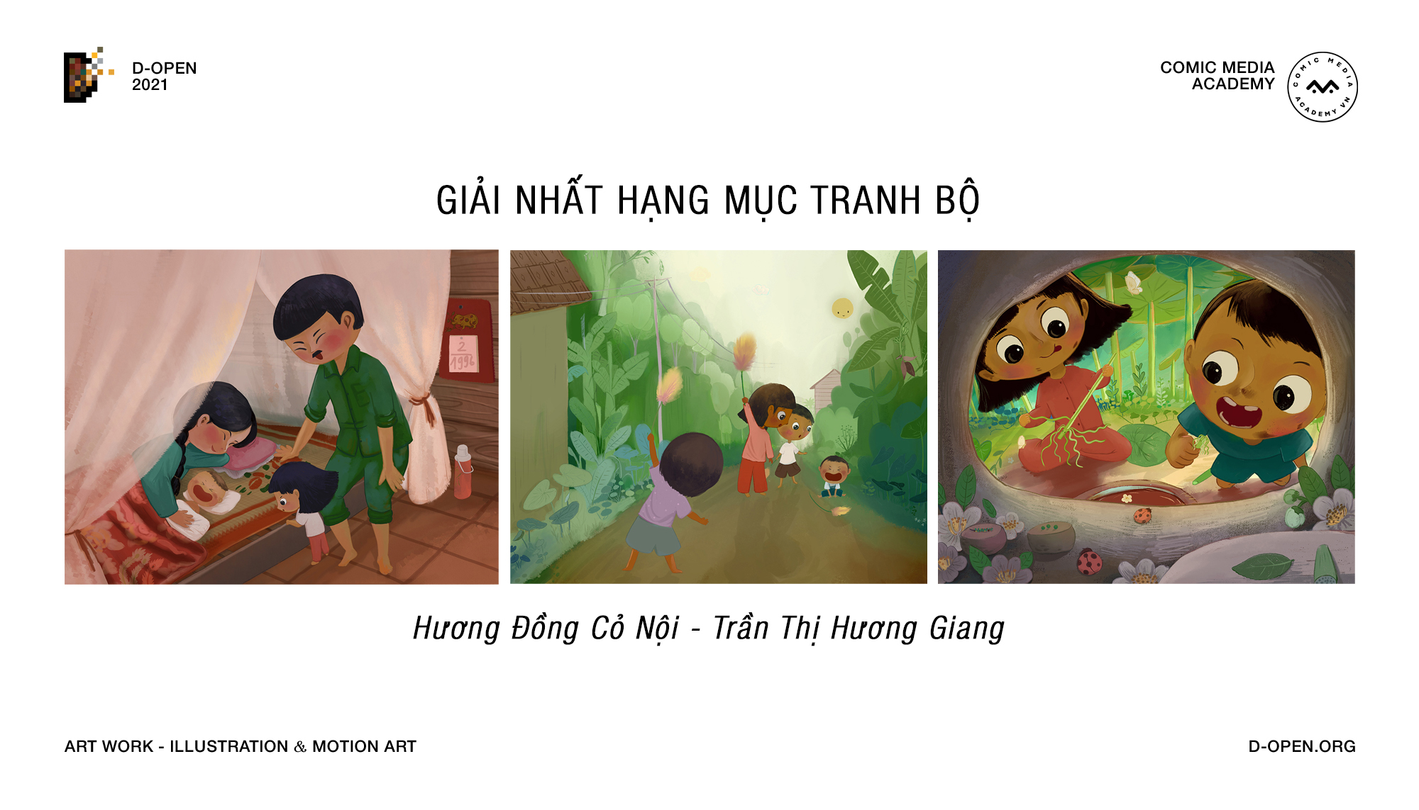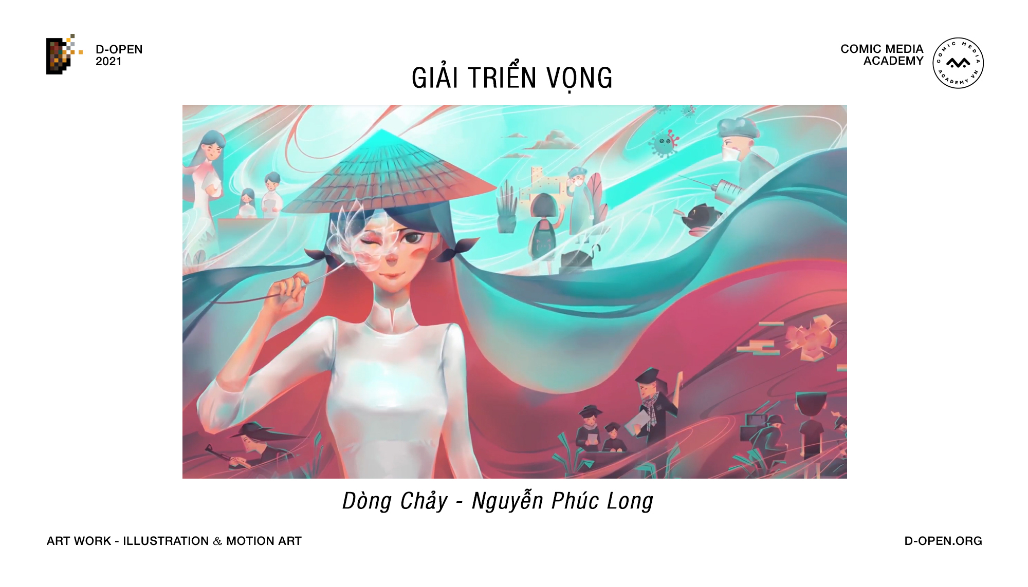 D-open 2021 với chủ đề “Việt Nam Phản Chiếu” đã thu hút sự tham gia của 147 tác giả trên cả nước cùng với 127 tác phẩm ấn tượng và đặc sắc. Tác phẩm dự thi được trình bày dưới các hình thức: Tranh đơn, Tranh bộ, Motion Art (Nghệ thuật chuyển động). Thông qua các tác phẩm, những hình ảnh mang đậm dấu ấn Việt đã được “phản chiếu” qua đôi mắt của các họa sĩ trẻ một các sinh động và gần gũi. Ở đó, những giá trị cũ – mới vừa tách biệt vừa song hành, tạo nên một Việt Nam vững chãi, mạnh mẽ và nhiều sức sống. 33 tác phẩm xuất sắc nhất đã lọt vào vòng chung kết, trong đó có 9 tác phẩm đạt giải nhất tuần từ sự bình chọn của khán giả.