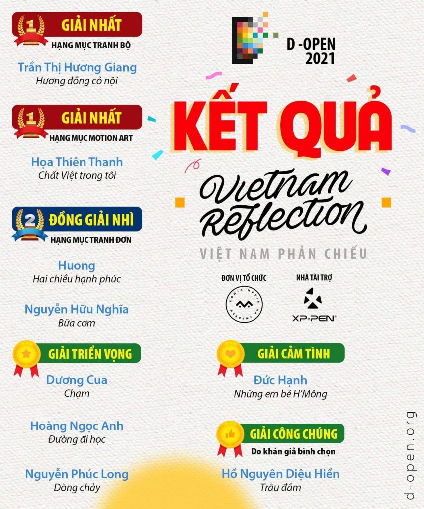 Sau 2 tháng tổ chức (24.5 – 25.7), D-Open – cuộc thi vẽ Digital Painting thường niên của Viện Truyện Tranh và Hoạt Hình Việt Nam – Comic Media Academy, do bảng vẽ điện tử XP-PEN tài trợ đã tổ chức đêm GALA trực tuyến khép lại mùa 2. Đây là một sân chơi lành mạnh, bổ ích dành cho các bạn trẻ trên toàn quốc yêu thích Digital Painting thể hiện tài năng và cá tính của mình.
