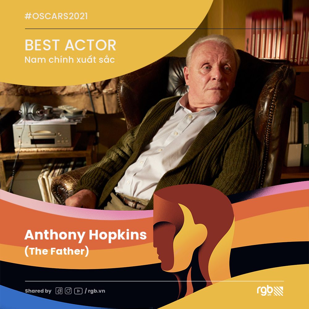 Với tượng vàng này, Anthony Hopkins trở thành diễn viên lớn tuổi nhất thắng Oscar. Ông đoạt giải nhờ vai diễn người cha mất trí nhớ ngoan cố đang phải thích nghi với cuộc sống sau khi chuyển đến sống với con gái trong “The Father”. The Guardian đánh giá diễn xuất của Hopkins là một màn trình diễn đáng kinh ngạc và có thể khiến người xem tan nát cõi lòng. Những cung bậc cảm xúc của nhân vật Anthony được Hopkins thể hiện chân thật và cuốn hút. Dù hơn 80 tuổi, ông vẫn có thể thực hiện cảnh nhảy tap dance đầy lôi cuốn. Hopkins gây xúc động cho người xem ở những cảnh suy sụp, cần bờ vai an ủi. Variety đánh giá tác phẩm đạt được sự sâu sắc mà rất ít phim có đề tài về nhân vật suy giảm trí lực có thể khắc họa, và ở đó diễn xuất tinh tế của Hopkins đã làm nên thành công của bộ phim.