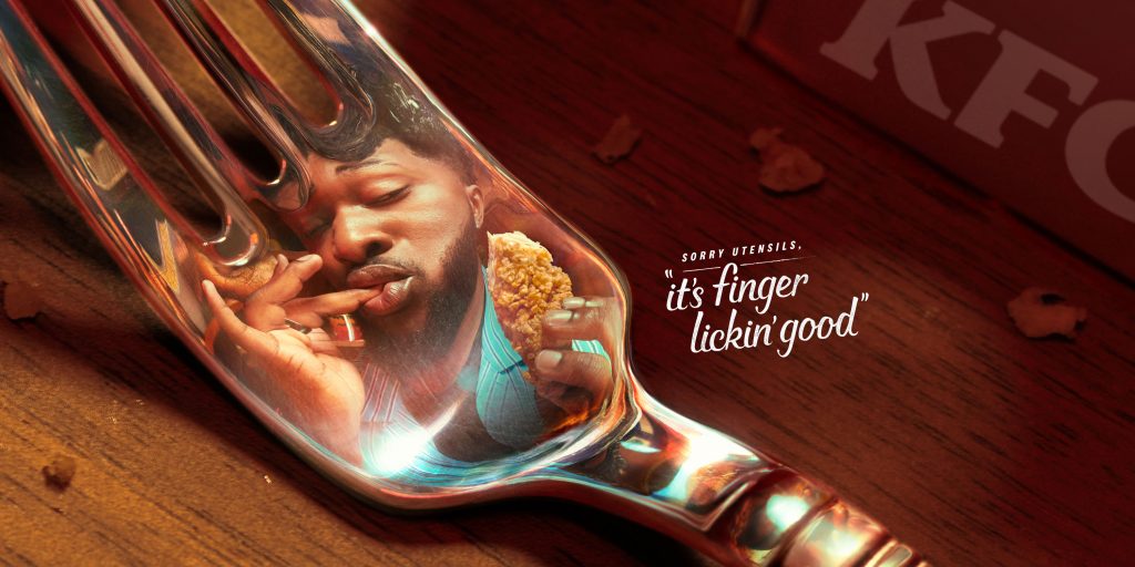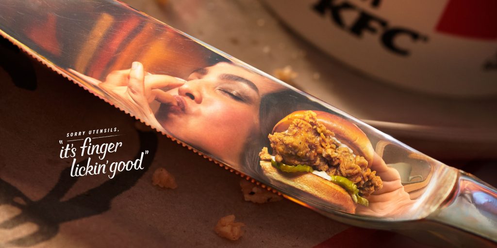Được thực hiện bởi công ty quảng cáo Courage, chiến dịch có tên Sorry Utensils là một loạt các hình ảnh và video đầy hài hước nói về hoàn cảnh đáng thương của bộ dụng cụ ăn liên tục bị bỏ bê tại các nhà hàng của KFC do gà rán của thương hiệu này ‘Finger Lickin’ Good’.
