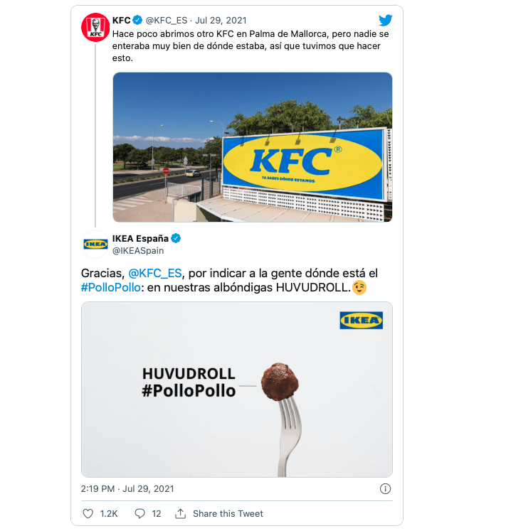 KFC đã sao chép màu sắc thương hiệu và logo của IKEA để thu hút sự chú ý của khách hàng ở Majorca, Tây Ban Nha bởi vì IKEA là tập đoàn bán lẻ cực kỳ nổi tiếng tại đất nước này.