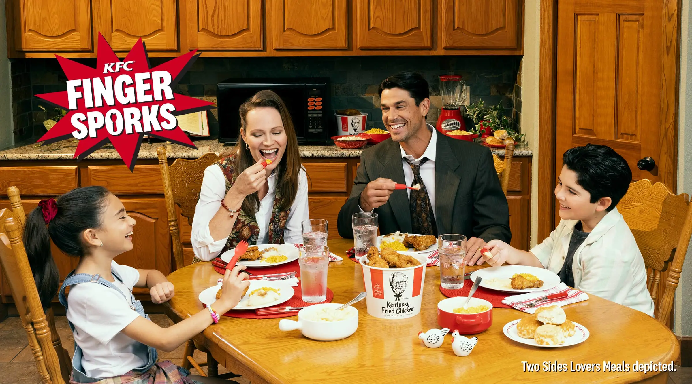 Cái tên nói lên tất cả, Sporks (từ ghép của chữ Spoon và Fork) là một loại dụng cụ ăn uống lai được kết hợp giữa muỗng và nĩa mà bạn mang trên ngón tay của mình. Không chỉ vậy, nó còn hứa hẹn một giải pháp “công thái học và ẩm thực” cho “công nghệ đồ ăn” với “khớp nối chính xác kết hợp công nghệ co cứng”, thông cáo báo chí của KFC cho biết.