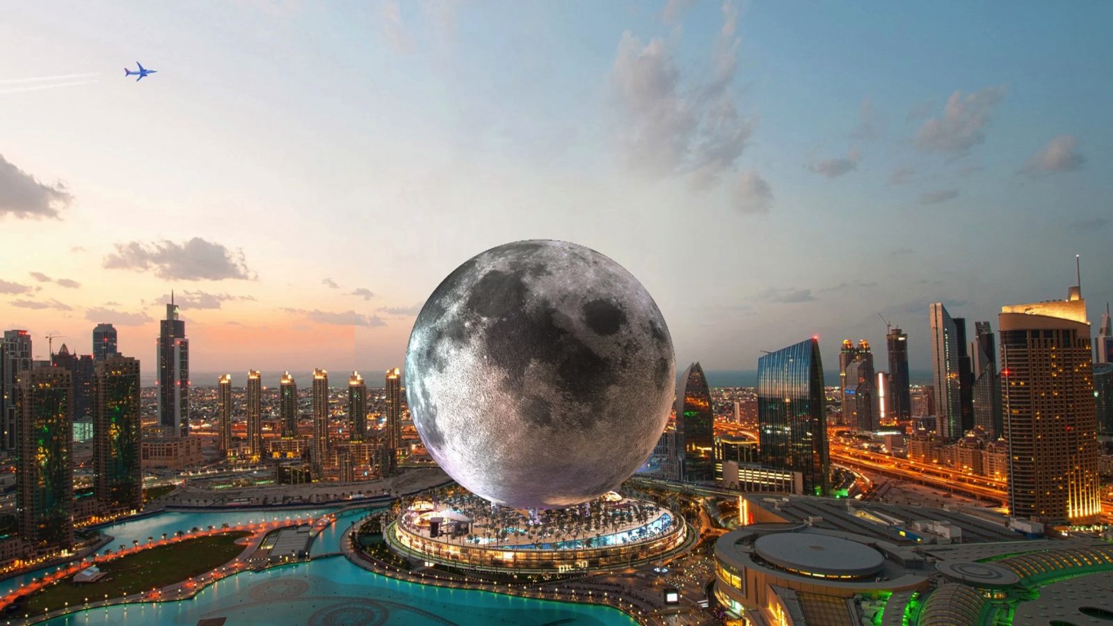 Trong khối cầu là một khách sạn 20 tầng với trải nghiệm mặt trăng được đặt trên đỉnh.