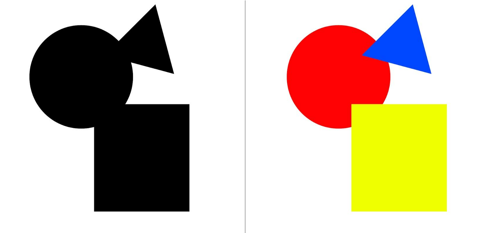 Não bộ sẽ tự hình dung ra hình tam giác, hình tròn và hình chữ nhật dù các đường nét ở hình bên trái không được vẽ đầy đủ.