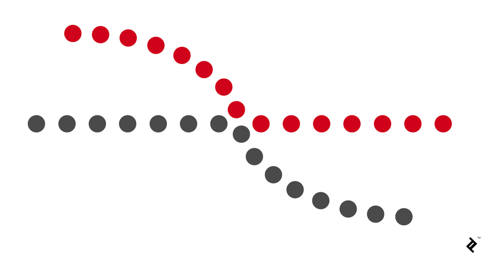 Dù được làm nổi bật bởi các chấm màu đỏ, nhưng mắt chúng ta vẫn mặc định hướng theo đường đi uyển chuyển nhất. Đúng không nào?