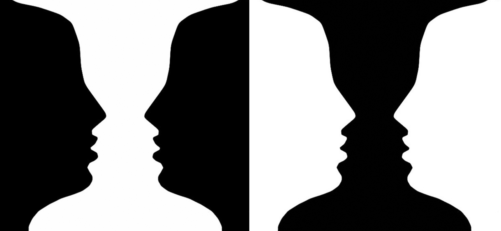 Não bộ chúng ta sẽ phân biệt được chi tiết nào trong bức ảnh là trọng tâm hoặc phần nền. Do đó, điều kích thích sự thú vị của chúng ta chính là việc nhìn thấy 2 hình ảnh độc lập nhau trong cả trọng tâm và phần nền của thiết kế. Như các ví dụ dưới đây: