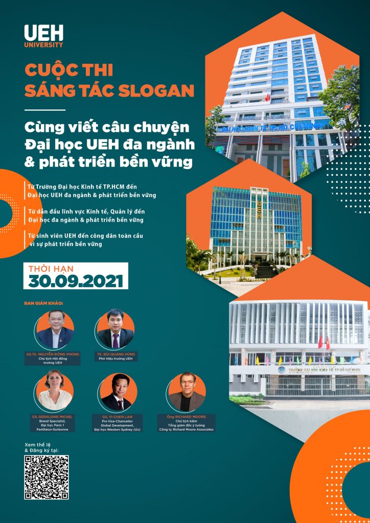 45 năm hình thành và phát triển, Trường Đại học Kinh tế TP. Hồ Chí Minh (UEH) không chỉ đóng vai trò trọng điểm trong hệ thống giáo dục đại học Việt Nam mà còn đặt những dấu ấn thành tựu, nâng cao danh tiếng học thuật của nước nhà. Tiếp tục những nỗ lực vươn lên mạnh mẽ, năm 2021 sẽ là năm mở đầu cho chiến lược tái cấu trúc Trường Đại học Kinh tế TP. Hồ Chí Minh, hình thành Đại học UEH đa ngành và phát triển bền vững. UEH chính thức khởi động cuộc thi Sáng tác Slogan Đại học UEH với giải thưởng lên đến 90.000.000 VNĐ.
