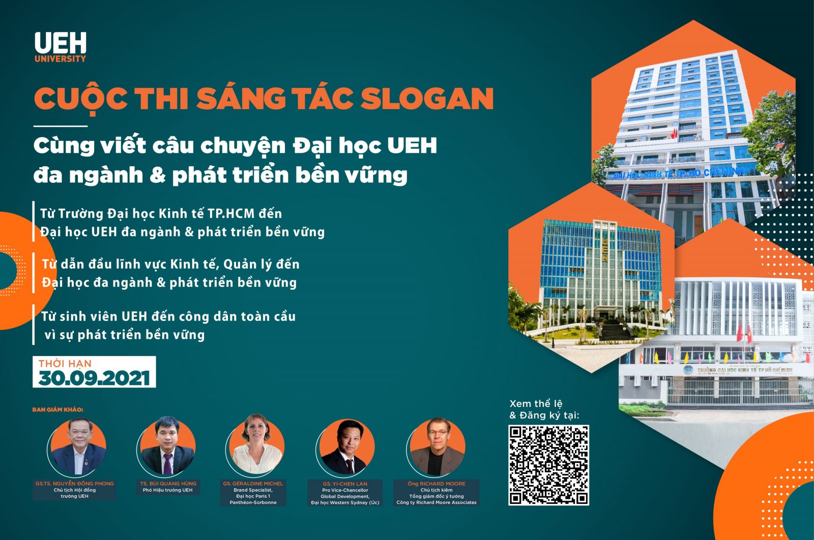 Để viết nên câu chuyện Đại học UEH đa ngành và phát triển bền vững, UEH chính thức khởi động cuộc thi sáng tác Slogan Đại học UEH. Cuộc thi dành cho công dân toàn cầu, công dân Việt Nam đang sống, học tập, làm việc tại Việt Nam cũng như nước ngoài, với tổng giá trị giải thưởng lên đến gần 90.000.000 VNĐ.