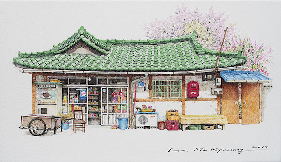 Những cửa hàng tạp hóa ở Hàn Quốc, tranh của Lee Me Kyeoung