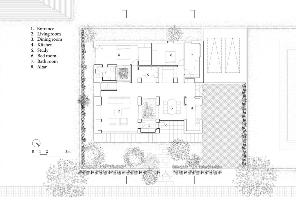 Ngôi nhà tọa lạc tại Nha Trang, một thành phố biển xinh đẹp ở miền Trung Việt Nam. Khách hàng muốn có một ngôi nhà lớn và một khu vườn rộng. Đáp ứng yêu cầu này, một mái nhà duy nhất được thiết kế như một khu vườn treo để trồng vô số cây cối và thực vật trên đó.