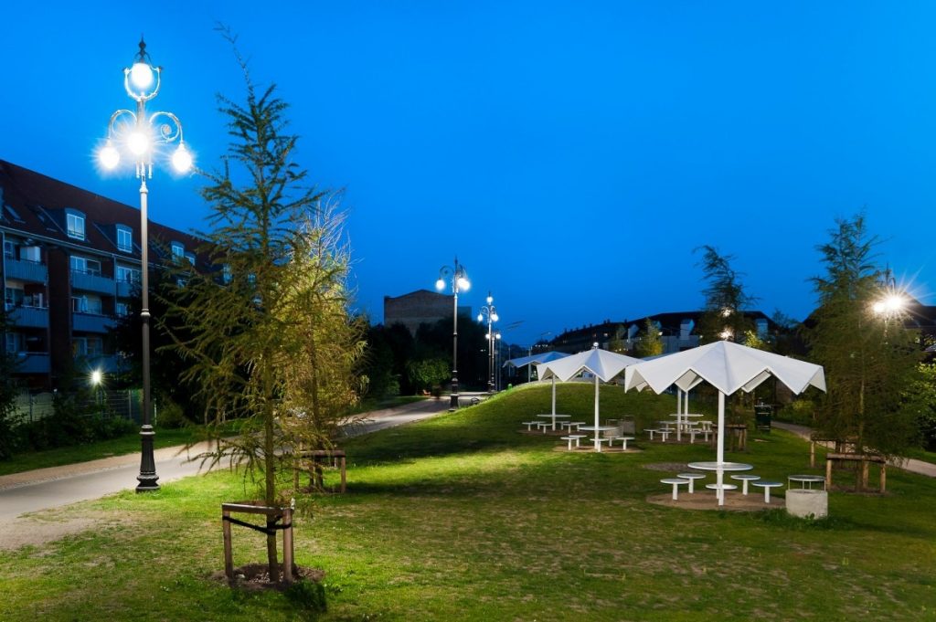 Công viên được thiết kế với 3 phần bao gồm quảng trường đỏ, quảng trường đen và công viên xanh. Trong công viên, cảnh quan và hoạt động hết sức đa dạng từ thể dục thể thao cho đến vườn cảnh thiên nhiên.