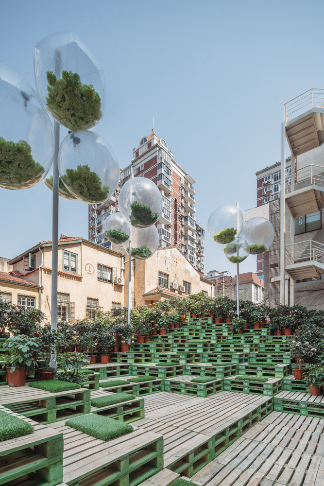 Urban Bloom ở Trung Quốc là một dự án thử nghiệm, biến nơi từng là bãi đỗ xe thành một khu vườn đô thị lý tưởng chỉ với những vật liệu tái chế. Những tấm pallet gỗ được thiết kế như những đường sóng nhấp nhô, tạo không gian phù hợp với các cuộc tụ họp, gặp gỡ. Nơi đây cũng được dành cho các sự kiện nhỏ, chỗ ngồi ngoài trời cho nhóm đông người,… Các không gian xung quanh cũng có thể trở thành nơi để thưởng thức cà phê, giải trí hay họp nhóm.