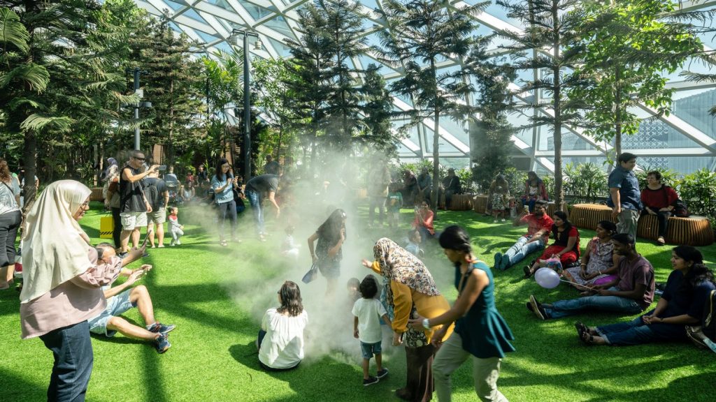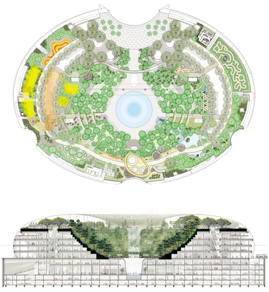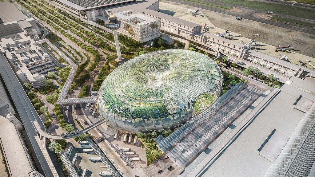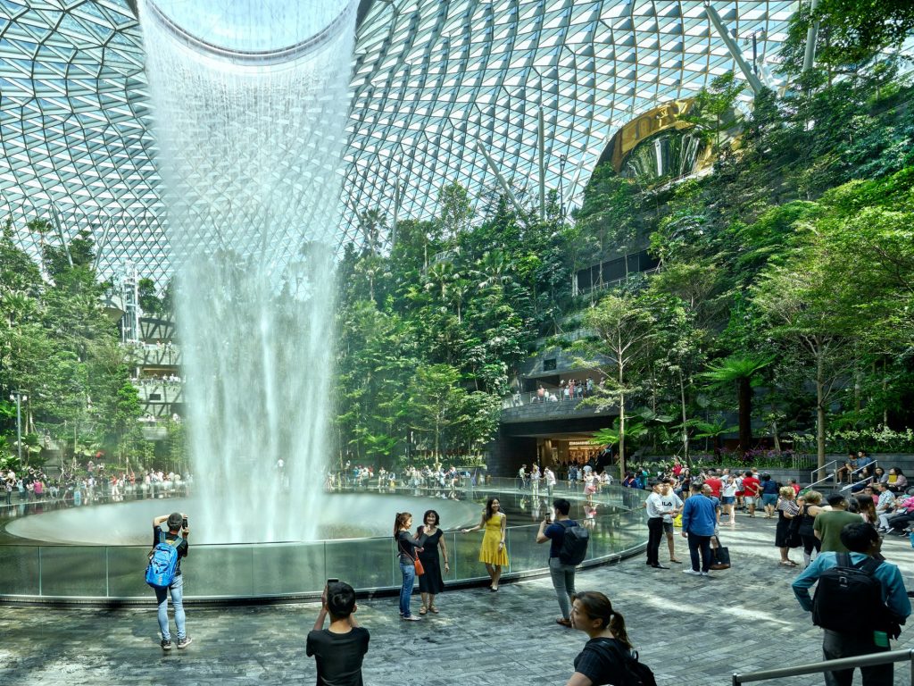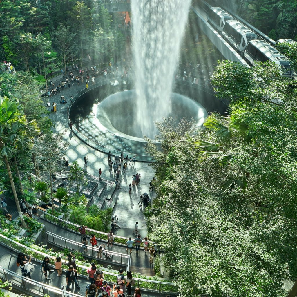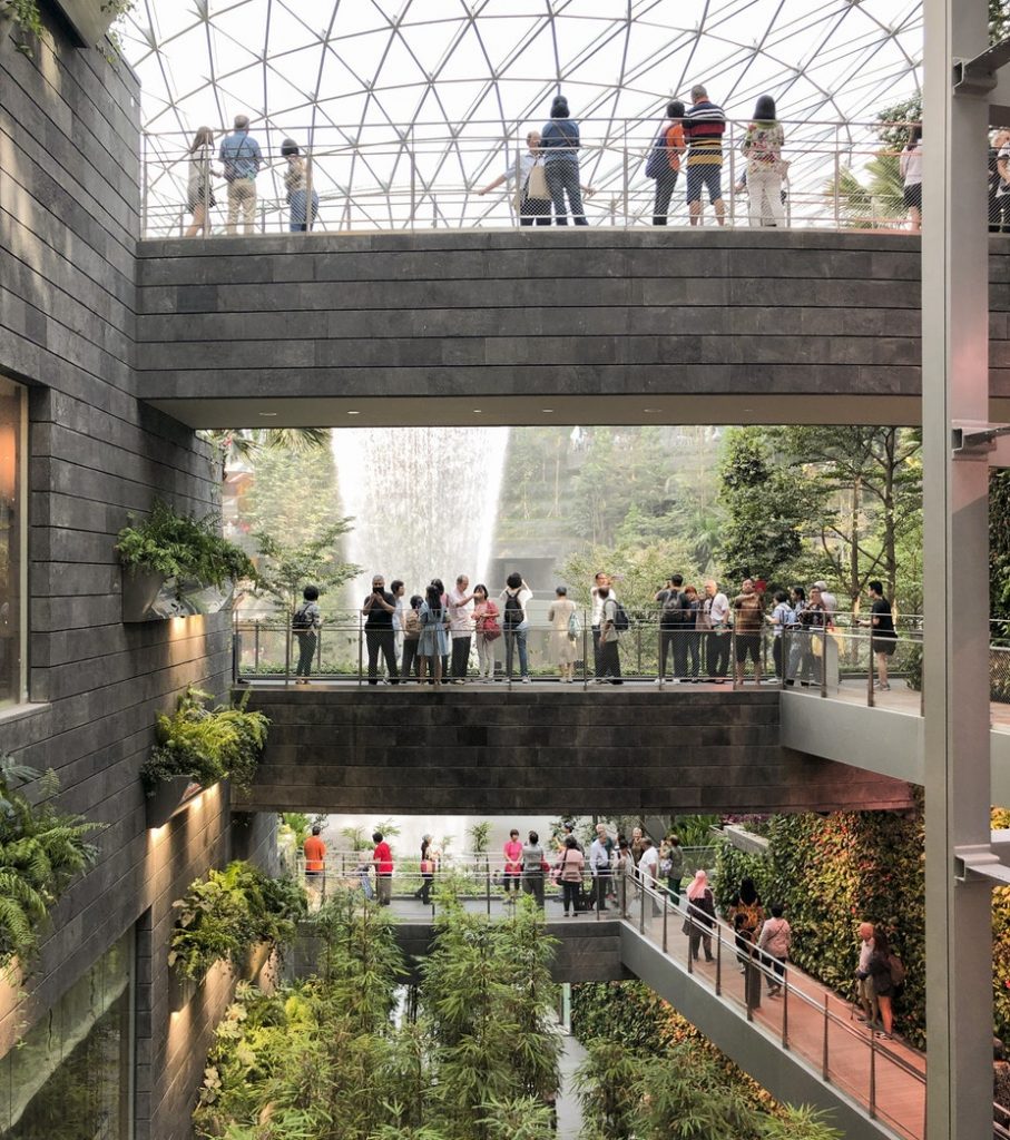 Trong thiết kế Terminal ở sân bay Changi, Sinpaore, ngoài việc tối ưu không gian cho việc lưu thông hành khách, khu vực này còn được biến thành một địa điểm biểu tượng, gia tăng giá trị cho du lịch, kinh tế. Mảng xanh và các yếu tố thiết kế mang tới cảm hứng, nhằm giúp du khách giảm bớt mệt mỏi sau những chuyến bay cũng như trở thành một nơi nghỉ ngơi lý tưởng.
