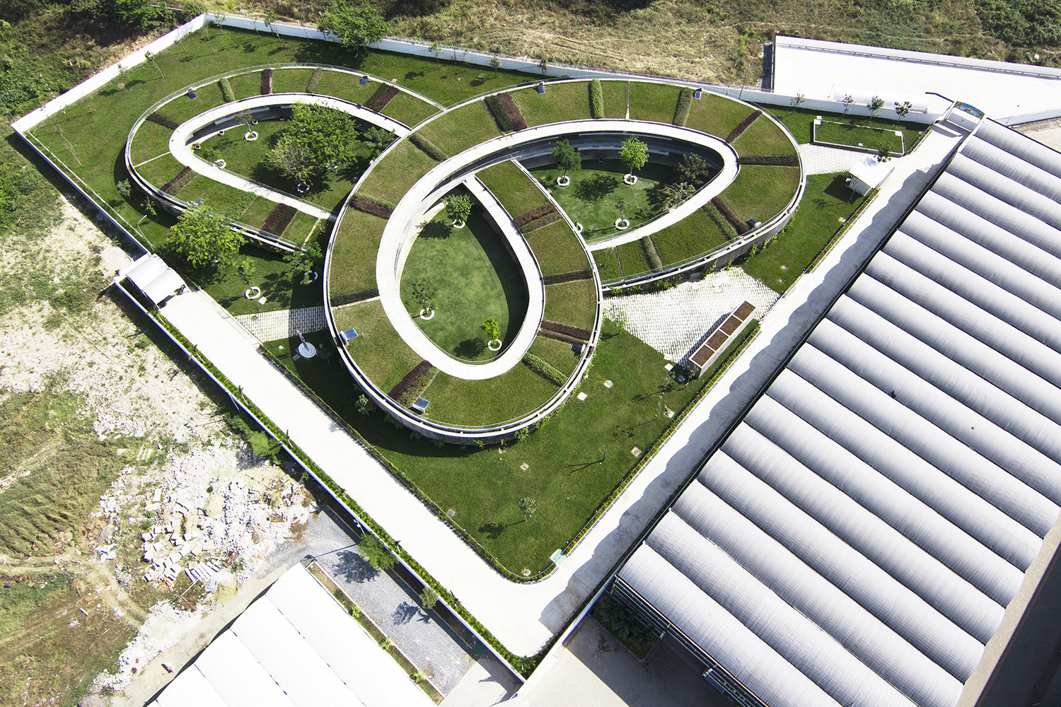 Một ví dụ về công trình Farming Kindergarten – ngôi trường mẫu giáo xanh ở Biên Hòa với sân chơi rộng lớn trải dài liên tục trên mái. Thiết kế tận dụng không gian và tăng cường các hoạt động thể chất gắn liền với thiên nhiên. Mái nhà xanh mát của Farming Kindergarten có hình dạng như ba vòng tròn được vẽ bằng một nét đơn, bao quanh ba khu sân bên trong làm sân chơi an toàn cho trẻ. Một vườn rau thử nghiệm cũng đã được hiện thực hóa trên mái. Có năm loại rau khác nhau được trồng trong khu vườn rộng 200m2 để phục vụ giáo dục nông nghiệp.