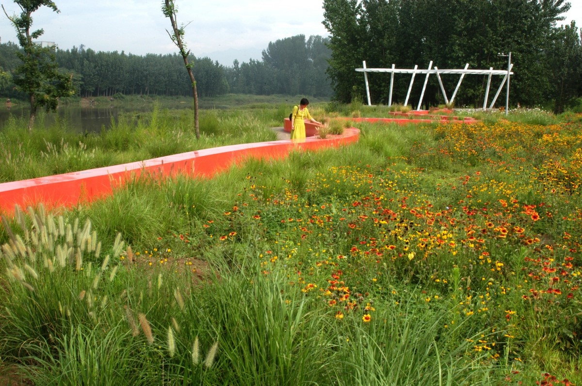 Một ví dụ trong việc tôn trọng không gian và khu vực, Dải Băng Đỏ là một thiết kế đặc biệt có chiều dài 500m, chạy qua công viên Qinhuangdao của Trung Quốc. Thiết kế này mang lại các chức năng như sự phản chiếu ánh sáng, chỗ ngồi, trồng cây xanh và xác định phương hướng. Nằm giữa địa hình tự nhiên và thảm thực vật phong phú, “dải băng” với thiết kế tối giản nhưng sống động bám dọc theo bờ sông, nơi dành cho các hoạt động giải trí và giáo dục về môi trường. Dự án này cho thấy một giải pháp thiết kế đơn giản nhưng mang đến hiệu quả đáng kể đối với cảnh quan.