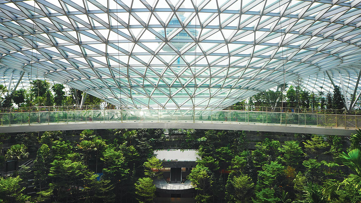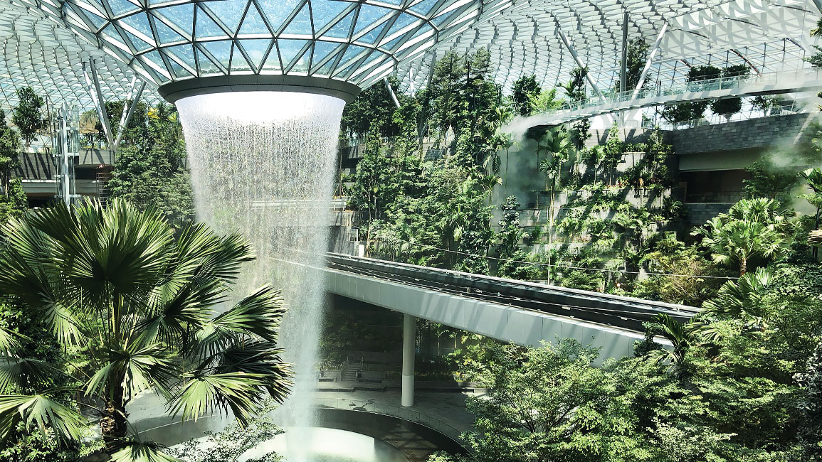 Trong thiết kế Terminal ở sân bay Changi, Sinpaore, ngoài việc tối ưu không gian cho việc lưu thông hành khách, khu vực này còn được biến thành một địa điểm biểu tượng, gia tăng giá trị cho du lịch, kinh tế. Mảng xanh và các yếu tố thiết kế mang tới cảm hứng, nhằm giúp du khách giảm bớt mệt mỏi sau những chuyến bay cũng như trở thành một nơi nghỉ ngơi lý tưởng.