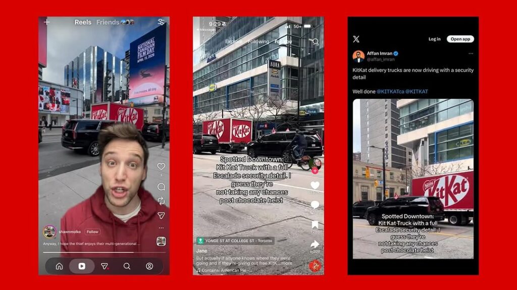 KitKat Canada đã biến vụ trộm hơn 12 tấn chocolate thành một màn “chơi lớn” đầy hài hước. Mới đây, thương hiệu đã tổ chức một đoàn hộ tống cho xe tải giao hàng hạy qua Toronto đúng dịp lễ Phục Sinh – thời điểm cao điểm cần bổ sung hàng hóa.