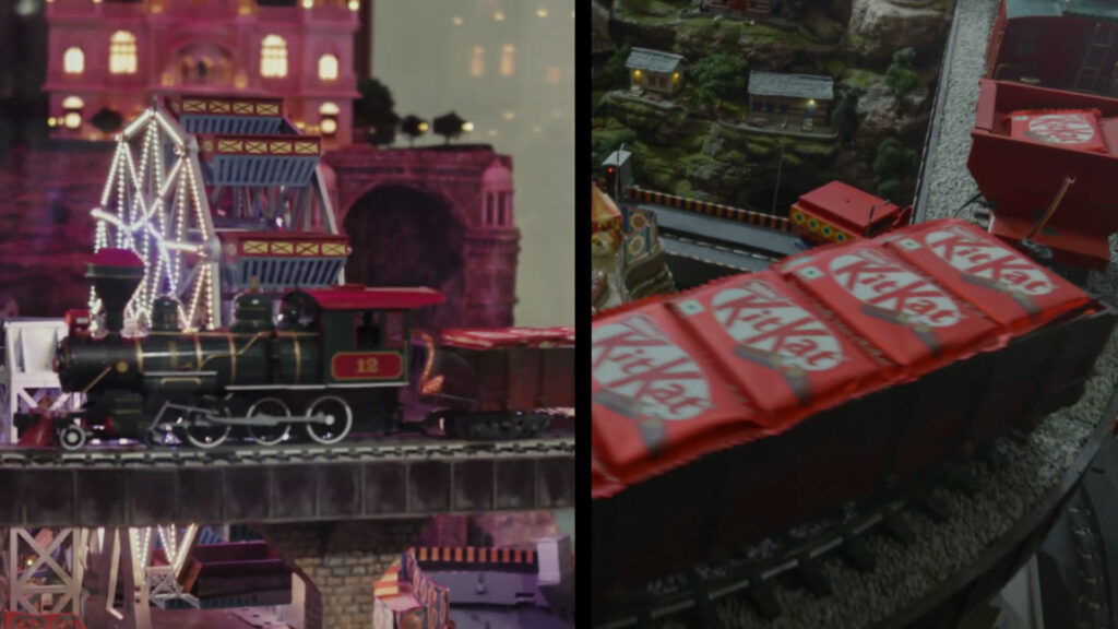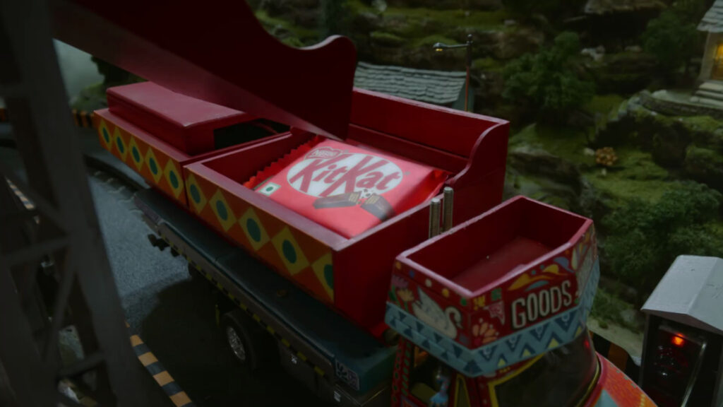 Đặt tại một trung tâm thương mại sầm uất ở Hyderabad, chiếc máy này không phục vụ nhu cầu “ăn nhanh – lấy gọn” như thông thường. Thay vào đó, nó cố tình kéo dài trải nghiệm. Sau khi bỏ tiền vào máy, thanh KitKat không rơi xuống ngay, mà bắt đầu một hành trình qua những mô hình thu nhỏ lấy cảm hứng từ đời sống Ấn Độ: đi tàu, qua vòng đu quay, băng qua dòng sông, hòa vào một đoàn diễu hành… trước khi đến tay người dùng. Một giao dịch chỉ đáng lẽ mất vài giây, giờ trở thành một trải nghiệm kéo dài, đủ để người ta dừng lại, quan sát và… tận hưởng.