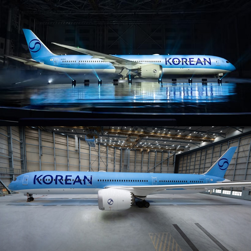 Theo đó, biểu tượng ‘Taegeuk’ – logo xanh và đỏ của hãng trong hơn 40 năm qua đã được đơn giản hóa thành màu xanh đậm đơn sắc. Về màu sắc và thiết kế, hãng vẫn giữ màu xanh da trời đặc trưng, nhưng đã áp dụng loại sơn mới để tạo hiệu ứng ánh kim trên máy bay.
