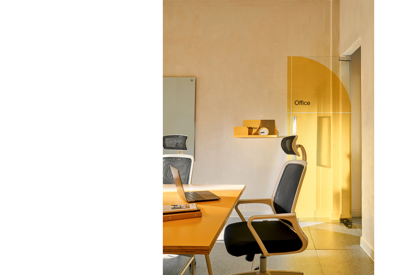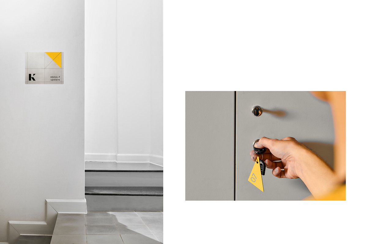 ức hấp dẫn của khái niệm này bắt đầu từ chữ cái K trong Ksoul, viết tắt của từ kinetic. M — N Associates team đã tạo ra một hệ thống có khả năng lặp lại sự linh hoạt của việc bố trí nội thất và lấy cảm hứng từ các hình dạng hình học của bản vẽ. Hệ thống này tỏ ra cực kỳ thú vị và phản hồi nhanh chóng trên các ứng dụng, trong khi vẫn duy trì được sự tối giản. Áp dụng hệ thống này vào chữ cái K, nó đã biến logo của KSOUL Studio thành một biểu tượng năng động và hiện đại, không còn là một biểu tượng cứng nhắc nữa.