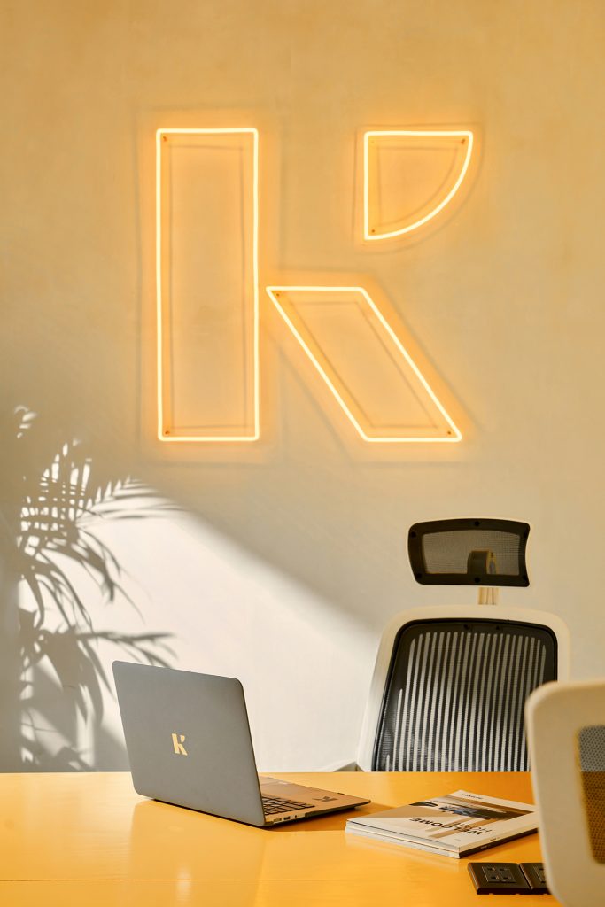 Sức hấp dẫn của concept này bắt đầu từ chữ cái K trong Ksoul, viết tắt của từ kinetic. M — N Associates team đã tạo ra một hệ thống có khả năng lặp lại sự linh hoạt của việc bố trí nội thất và lấy cảm hứng từ các hình dạng hình học của bản vẽ. Hệ thống này tỏ ra cực kỳ thú vị và phản hồi nhanh chóng trên các ứng dụng, trong khi vẫn duy trì được sự tối giản. Áp dụng hệ thống này vào chữ cái K, nó đã biến logo của KSOUL Studio thành một biểu tượng năng động và hiện đại, không còn là một biểu tượng cứng nhắc nữa.