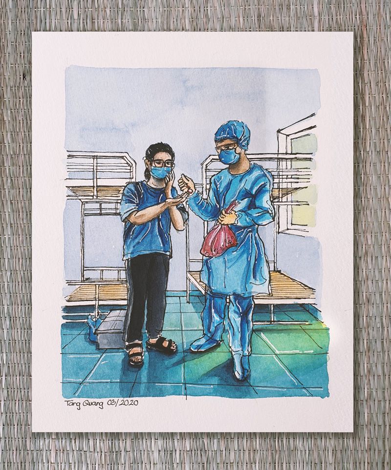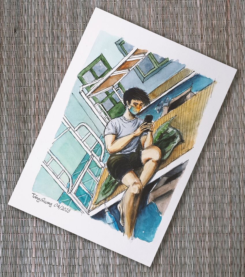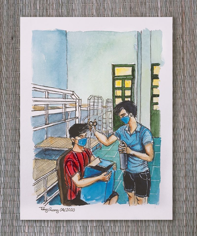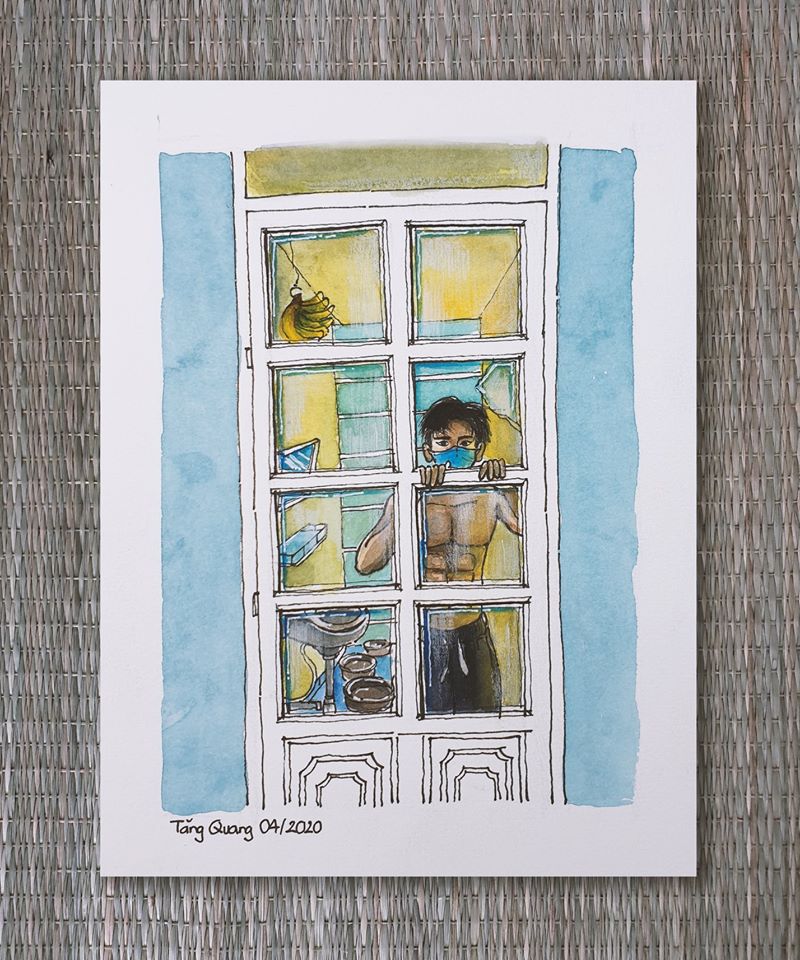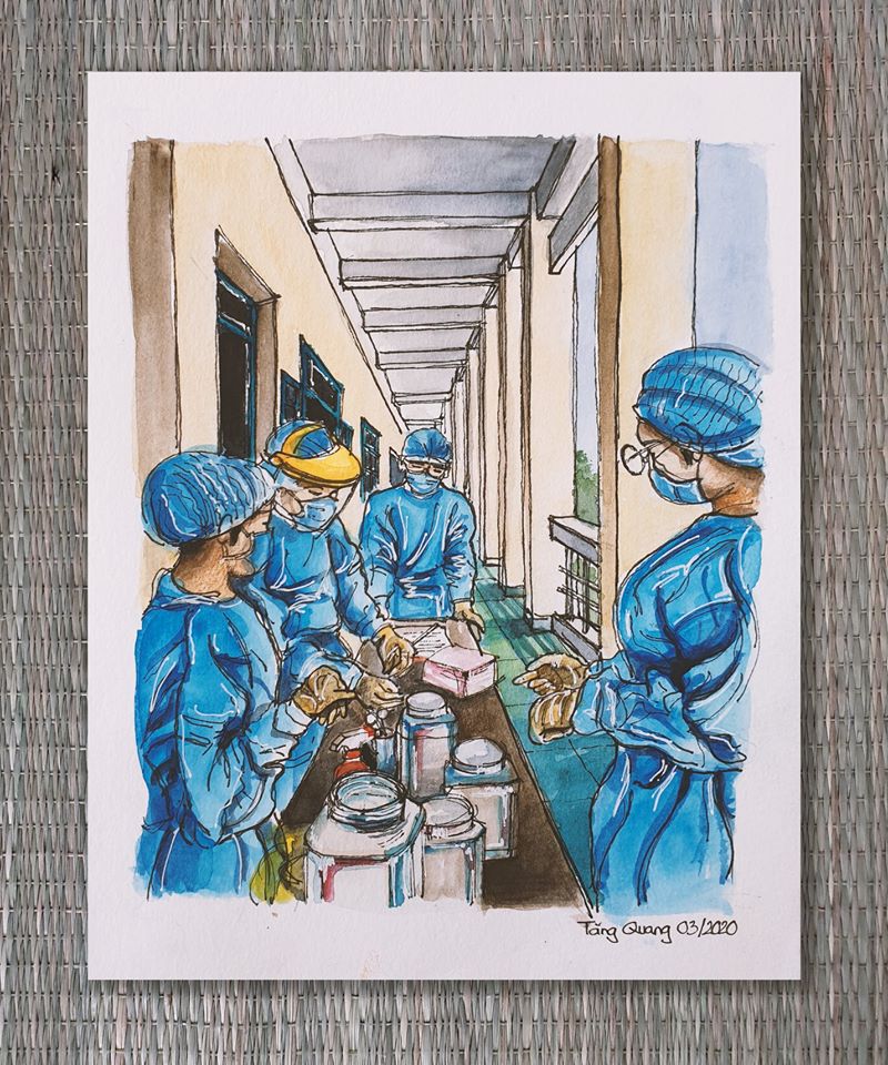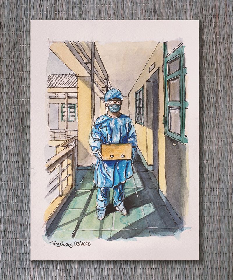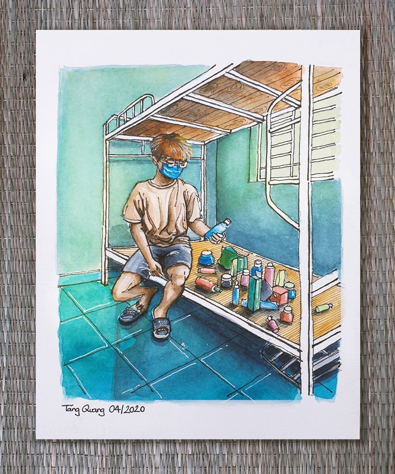 Những bức ký họa dễ thương cùng nội dung hài hước duyên dáng của chàng kiến trúc sư Tăng Quang, mô tả cuộc sống những ngày trong khu cách ly khiến dân tình thích thú. Bộ ảnh “gây bão” với hàng chục ngàn lượt tương tác này đã một phần cho người xem hình dung được sự vất vả và nỗ lực của các chiến sĩ chống dịch.