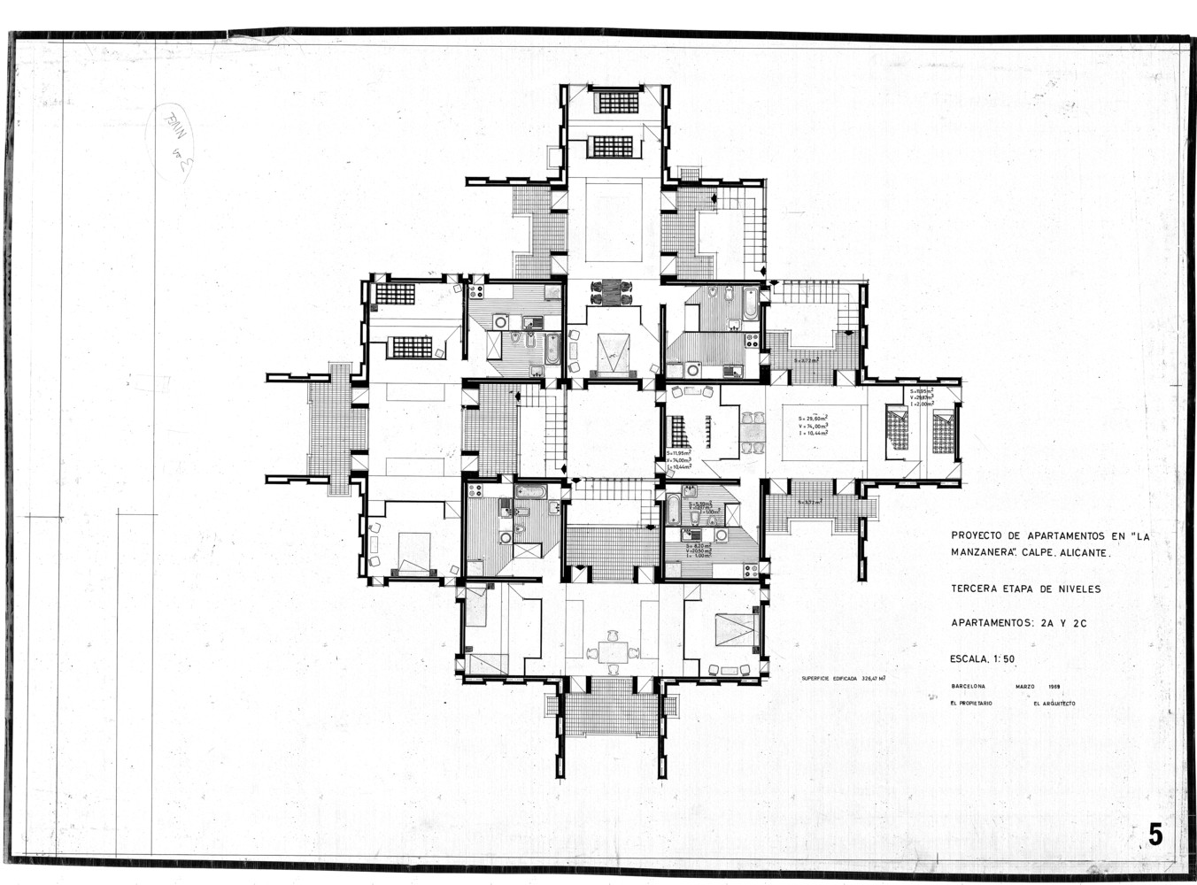 Sự phức tạp của dự án càng tăng lên với việc phân chia các căn hộ thành ba kích thước: căn hộ 60m2, căn hộ 2 phòng ngủ 80m2 và căn hộ 3 phòng ngủ 120m2. Mong muốn nâng tầm chất lượng cuộc sống của kiến trúc sư Ricardo Bofill được thể hiện thông qua sân thượng trên mái, phòng tắm nắng, hồ bơi và phòng xông hơi khô, tất cả đều được dành cho cư dân sử dụng.