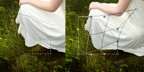 B3 : Tiếp theo, bạn khoanh vùng giống như trong hình và ấn CTRL + T, click phải chuột và chọn WARP và chỉnh như trong hình.