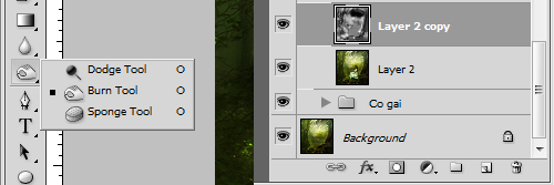 Ấn phím ” O ” . Chúng ta sẽ sử dụng 2 công cụ là Dodge và Burn. Dodge dùng để làm tăng độ sáng và Burn dùng để tăng độ tối. Đây là bước quan trọng trong mỗi bức hình MANIPULATION