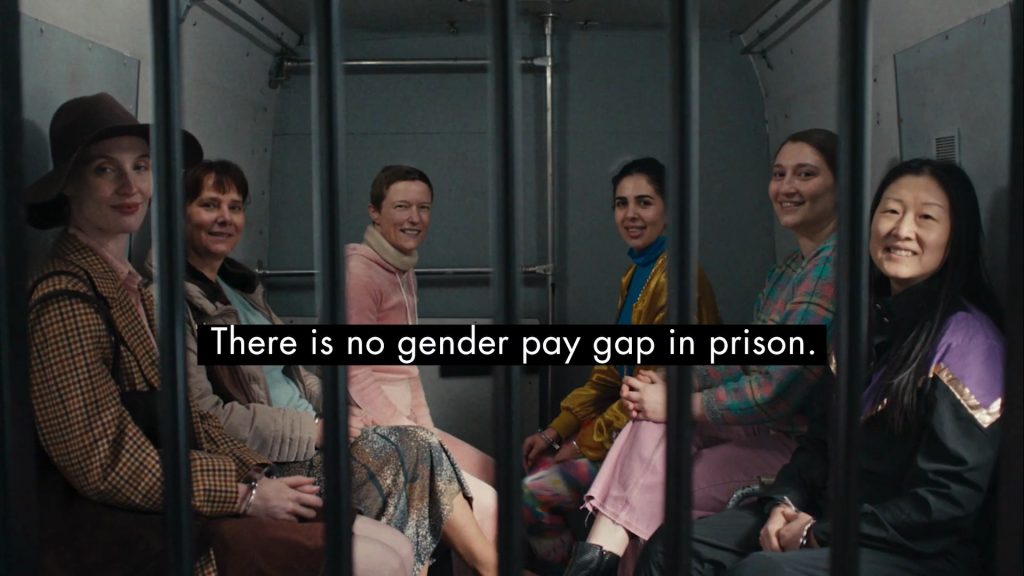 Trong bộ phim của chiến dịch, nhiều phụ nữ cố tình tìm cách bị bắt để được vào tù. Mục tiêu của họ không phải trốn chạy xã hội, mà đơn giản là tìm đến một môi trường nơi công sức của họ được trả ngang bằng với nam giới. Cách tiếp cận được đẩy đến mức phi lý này nằm trong truyền thống truyền thông mang tính châm biếm. Bằng cách phóng đại đến cực đoan, chiến dịch làm nổi bật sự bất công của thực tế hiện tại.
