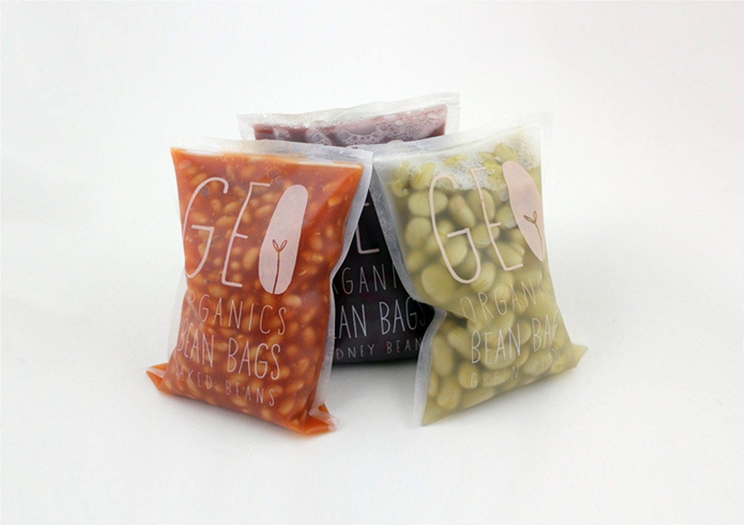 Hai ví dụ tiếp theo minh hoạ cho việc các phông nềntrong suốt thì đặc biệt hiệu quả đối với bao bì thực phẩm. Đầu tiên, những túi đậu này phô ra màu và hình dạng của sản phẩm bên trong.