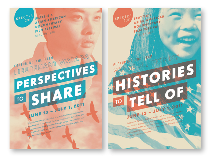 Một ví dụ nữa của việc tạo tầng lớp, những thiết kế này kết hợp nhiếp ảnh, một khối màu xuyên thấu và một hoạ tiết đồ hoạ.