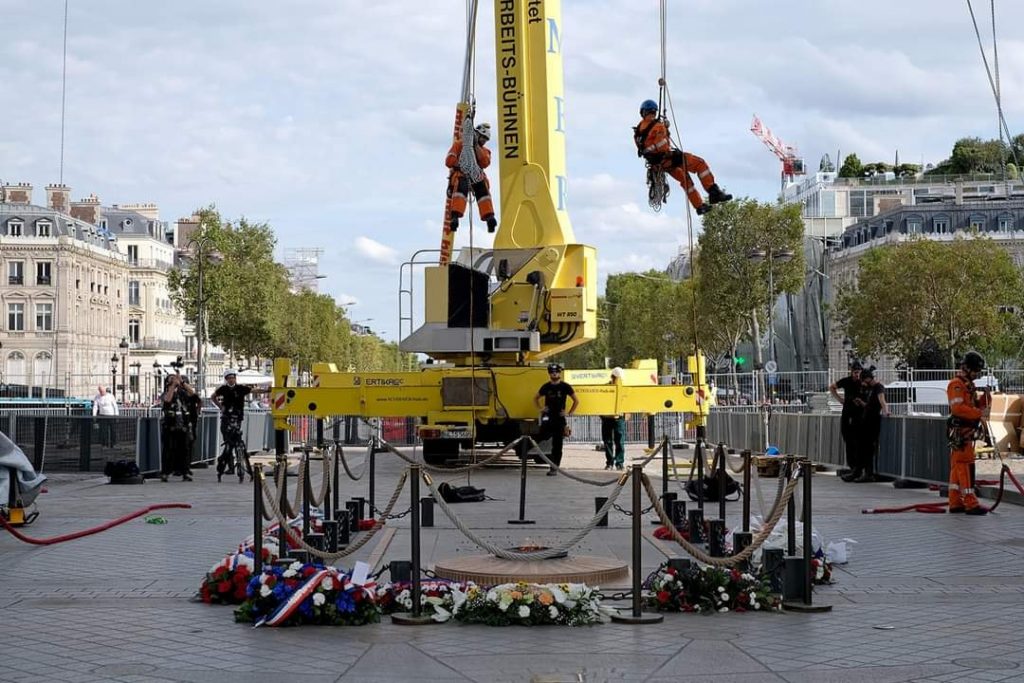 Cả vải và dây thừng đều được làm từ polypropylene, một loại nhựa nhiệt dẻo và có thể tái chế. Sau khi hoàn tất việc lắp đặt, giao lộ Place Charles de Gaulle bao quanh tượng đài sẽ tạm thời chỉ dành cho người đi bộ.