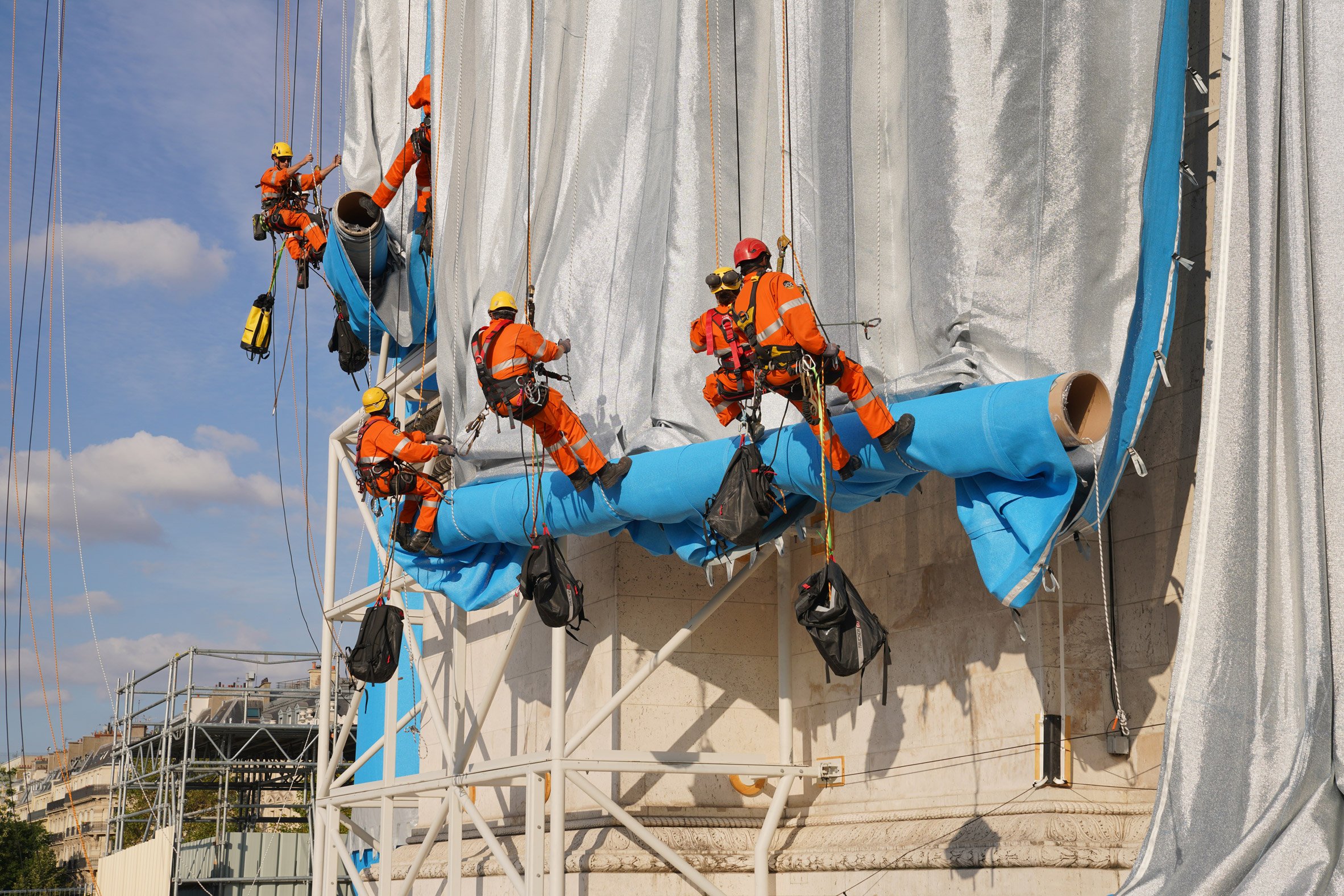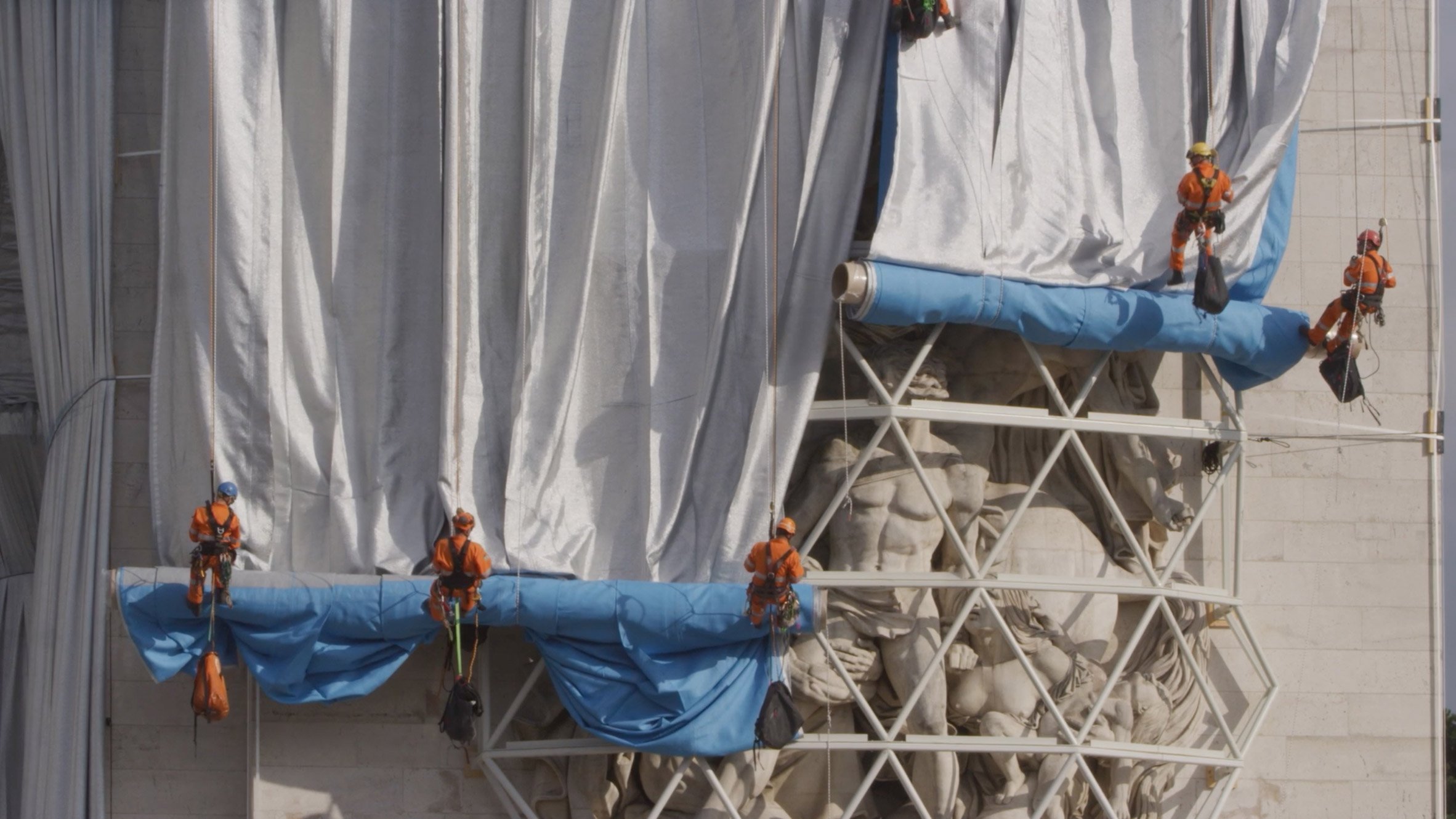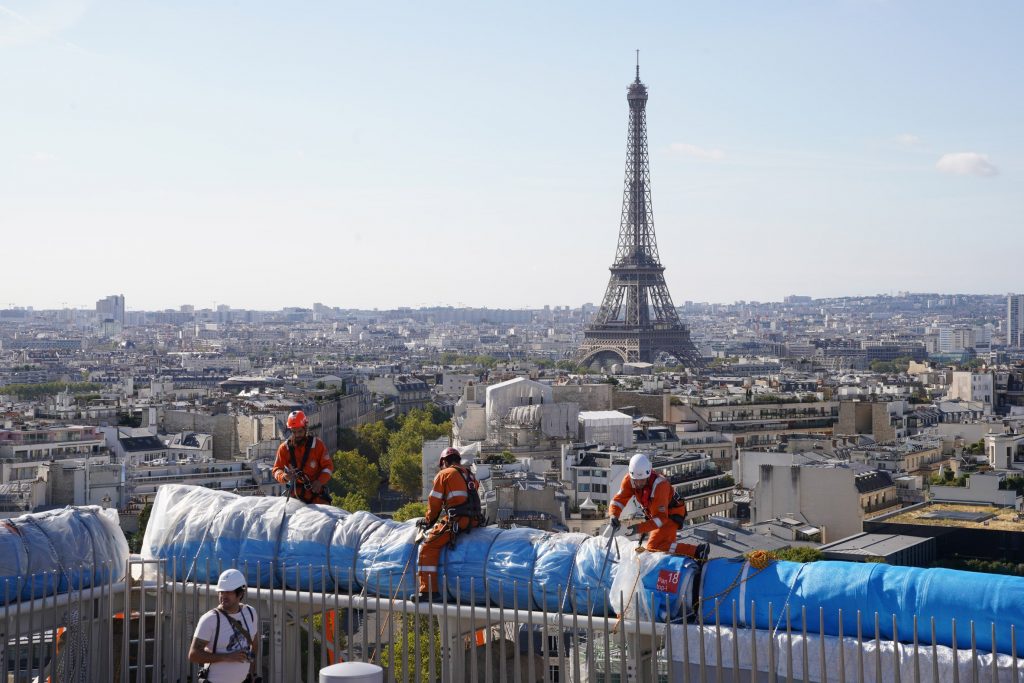 Cả vải và dây thừng đều được làm từ polypropylene, một loại nhựa nhiệt dẻo và có thể tái chế. Sau khi hoàn tất việc lắp đặt, giao lộ Place Charles de Gaulle bao quanh tượng đài sẽ tạm thời chỉ dành cho người đi bộ.