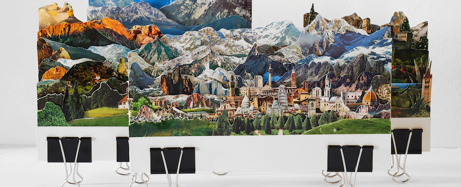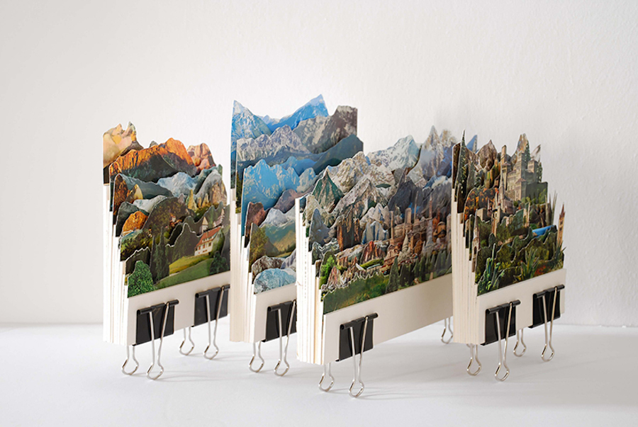 Nghệ sĩ Caterina Rossato đã thiết kế nên những bức phong cảnh nhiều tầng lớp từ những tấm bưu thiếp cũ mà trên đó, những tấm thiệp độc đáo này đã phác hoạ lại cảnh quan thu nhỏ của khắp nơi trên thế giới bằng nhiều chân trời khác nhau chồng lên nhau tầng tầng lớp lớp. Những bức phong cảnh này đem đến cho người xem ấn tượng về các chi tiết rất nhỏ tạo nên khung cảnh tầm sâu, nơi những ngọn núi được đặt liền kề và mọi thứ xếp gối lên nhau hài hoà, tạo nên một khung cảnh hoàn hảo.