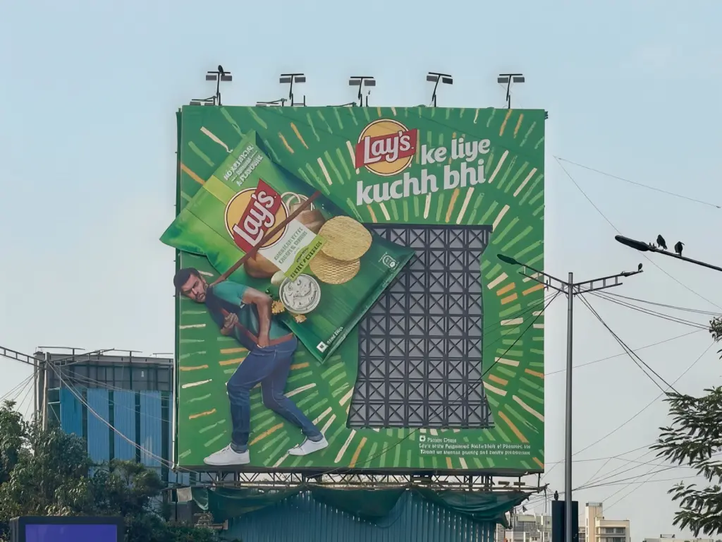 Thay vì nằm gọn trong khung billboard, Lay’s đã “đẩy” các chi tiết ra ngoài không gian thật, biến biển quảng cáo thành cấu trúc 3D ấn tượng buộc người đi đường phải ngoái nhìn. Từ đó làm nổi bật thông điệp của thương hiệu: “Lay’s Ke Liye Kuch Bhi” (Làm mọi thứ vì Lay’s).