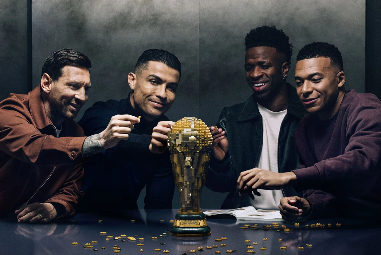 Trong lần hợp tác này, LEGO quy tụ bốn cái tên đình đám: Lionel Messi, Cristiano Ronaldo, Kylian Mbappé và Vinícius Jr. – lần đầu tiên xuất hiện cùng nhau trong một không gian sáng tạo chung. Không chỉ được “lắp ráp”, các cầu thủ còn trực tiếp xuất hiện trong chiến dịch, đặc biệt xoay quanh việc dựng chiếc cúp World Cup phiên bản LEGO, khiến toàn bộ ý tưởng trở nên sống động và cụ thể hơn.