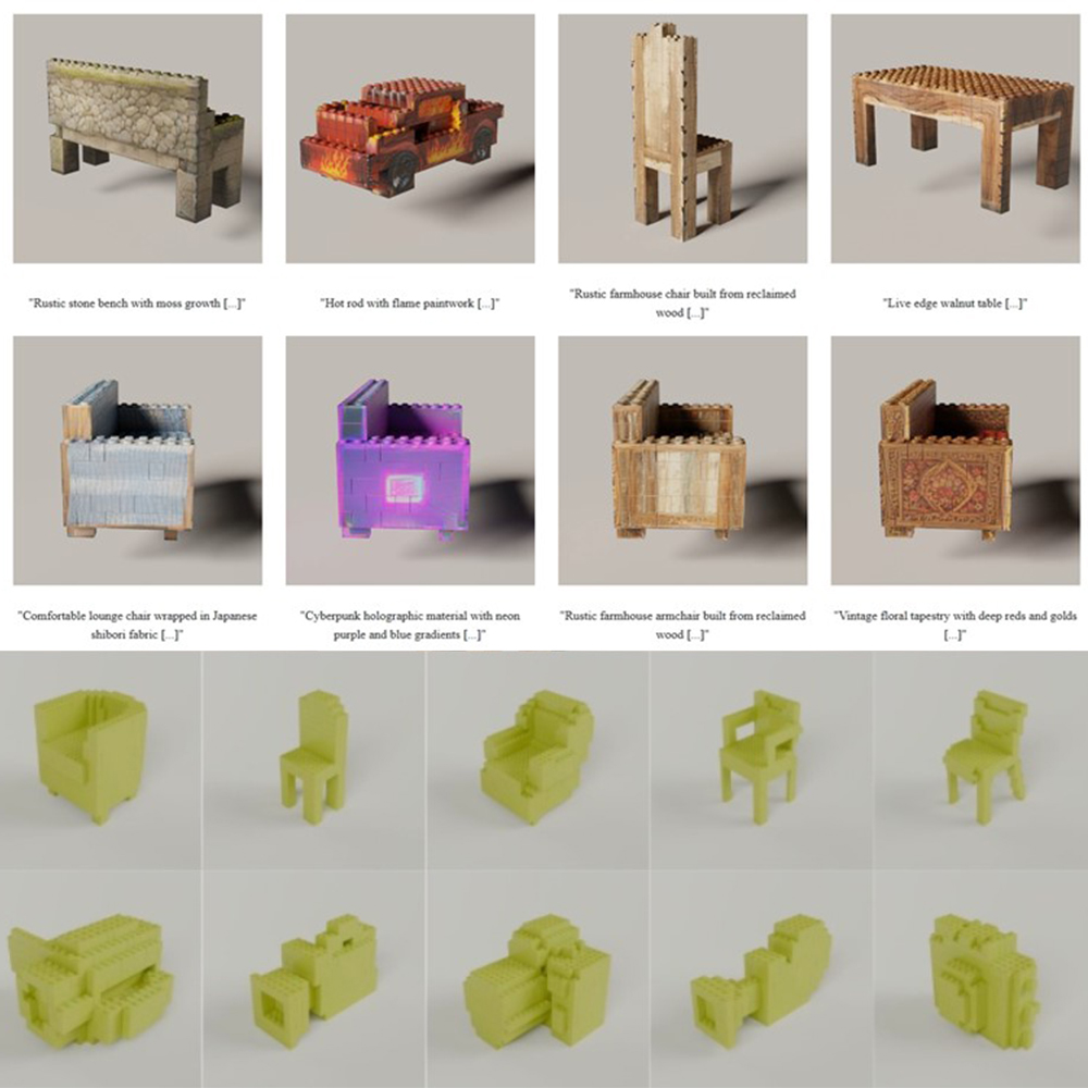 LegoGPT không chỉ hỗ trợ người dùng tạo ra các thiết kế từ mô tả văn bản mà còn có thể áp dụng màu sắc và kết cấu theo yêu cầu, ví dụ như “ghế sofa với họa tiết Shibori Nhật Bản” hoặc “xe hơi với lớp sơn neon phong cách cyberpunk”. Các thiết kế này có thể được lắp ráp thủ công hoặc bằng robot, mở ra khả năng ứng dụng trong giáo dục, thiết kế nội thất tùy chỉnh và sản xuất nhanh.