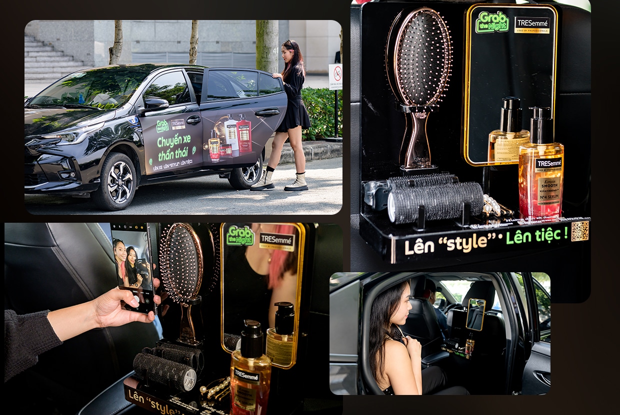 Không còn là những chuyến đi thông thường, giờ đây 100 chiếc GrabCar đã trở thành những trạm “makeover” di động, mang đến trải nghiệm chỉnh trang tức thời, đặc biệt là mái tóc: từ rối bời thành vào nếp, từ casual đến cực slay để hành khách khi bước xuống xe có thể tự tin tỏa sáng ngay lập tức.