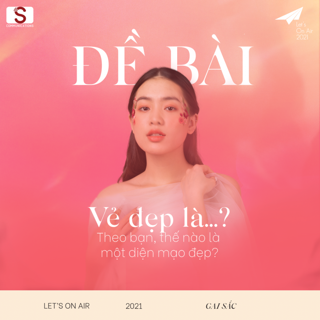 Trở lại cùng chủ đề “Gai Sắc”, Let’s On Air 2021 là “Sân tập bay” cho những ước mơ không biên giới, luôn khao khát tìm tòi và truyền tải những thông điệp tích cực thông qua những tác phẩm nghệ thuật. Cuộc thi “Vẻ đẹp là…?” nằm trong khuôn khổ Chiến dịch, dành cho những bạn trẻ có thể thỏa sức sáng tạo trong ba hạng mục dự thi:
